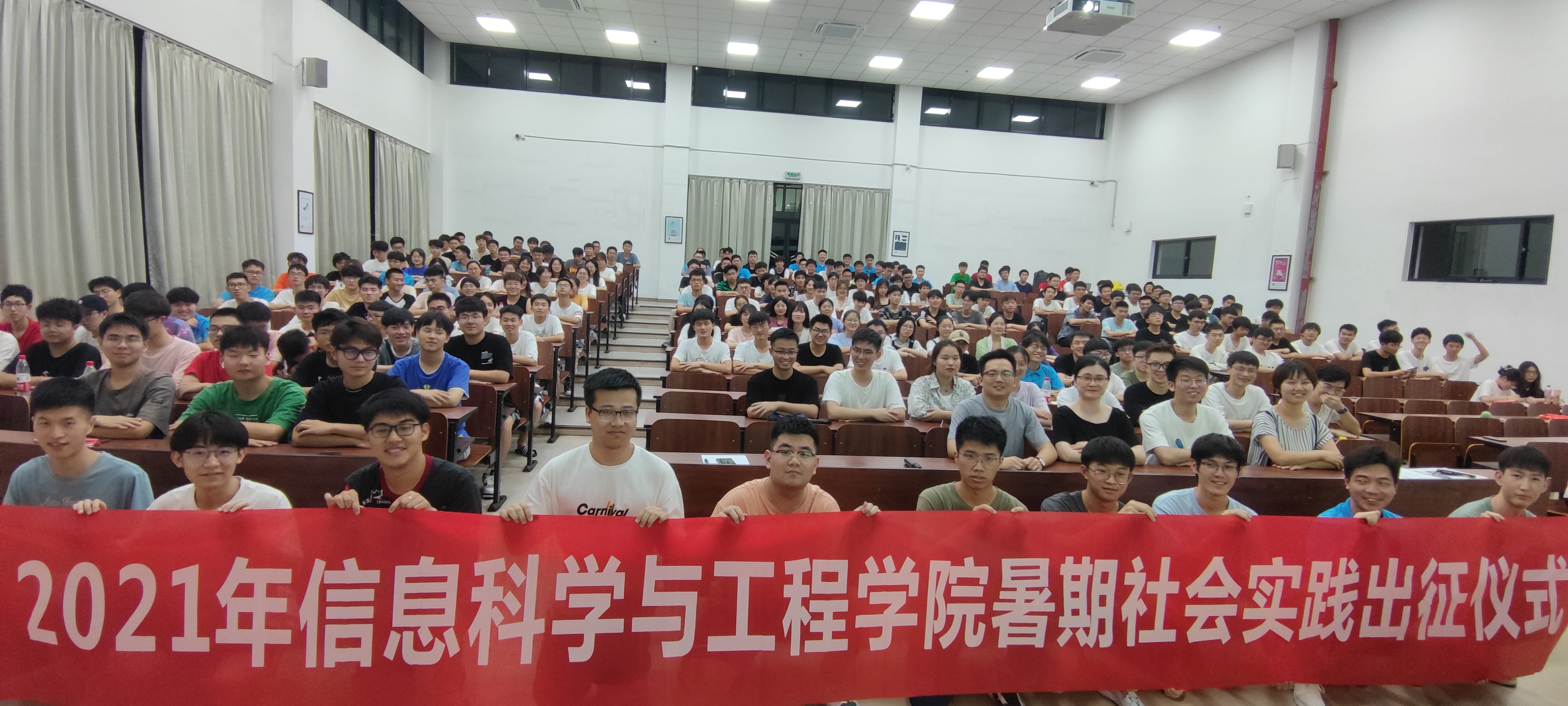 7月7日晚上六点,信息学院在NC102举行暑期社会实践出征仪式,学院党委副书记方芳、学工办主管杜明珠、学工办辅导员陈相杰、学院团委书记金智展以及2021年暑期社会实践全体成员出席本次仪式,本次仪式由韩楚滢同学主持召开。