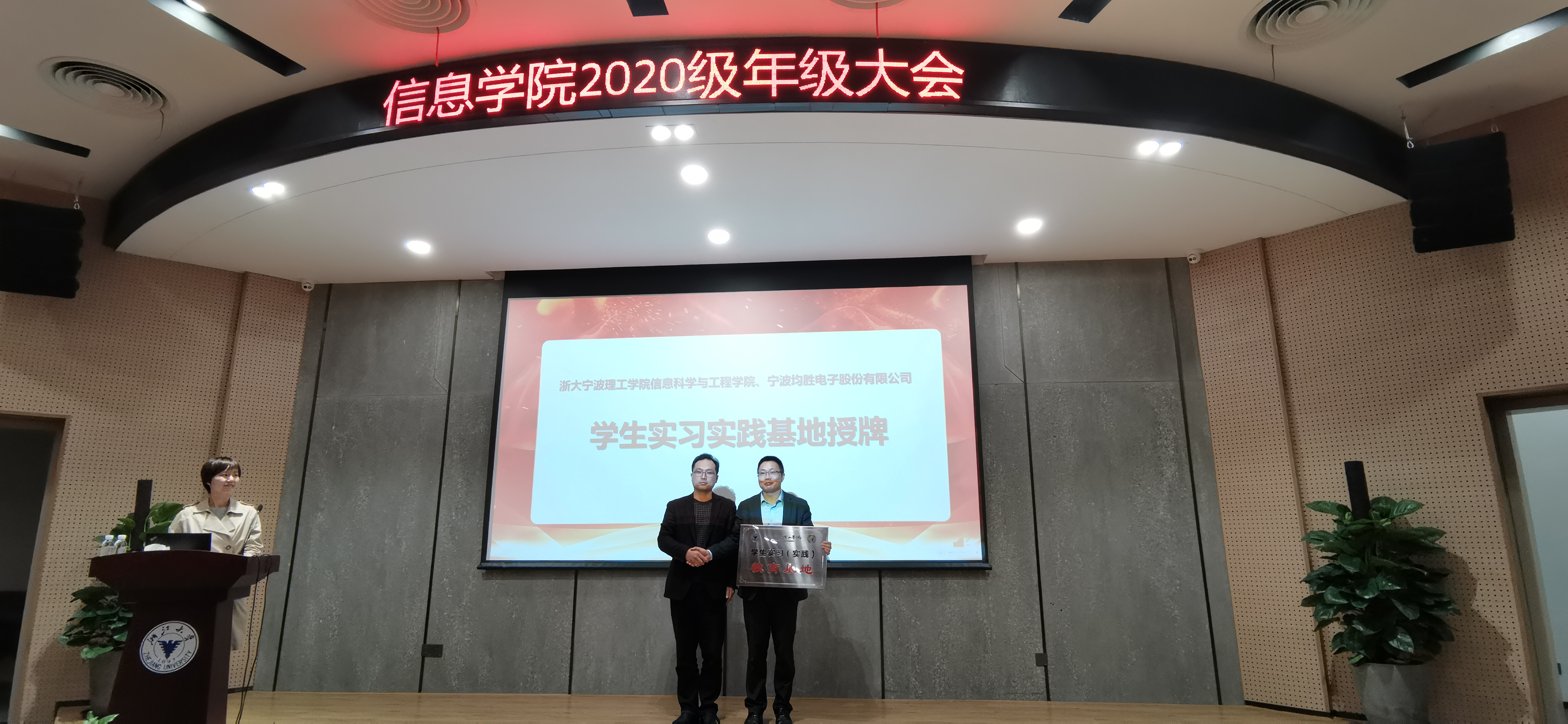 4月12日晚,信息学院与宁波均胜电子股份有限公司举行实习实践基地授牌仪式,标志着双方的合作全面开启。宁波均胜电子股份有限公司人力资源经理谢炜出席仪式。信息学院党委书记应中元、教学副院长陶吉利、党委副书记方芳等师生代表参加了授牌仪式。