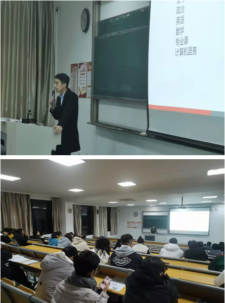为了让更多有志考研的同学们明确努力的方向,加强对2018级考研学生的专业指导,学院于12月3日晚在SC113教室举办了关于如何择校择专业的考研讲座,讲座邀请印校园资深辅导教师主讲。