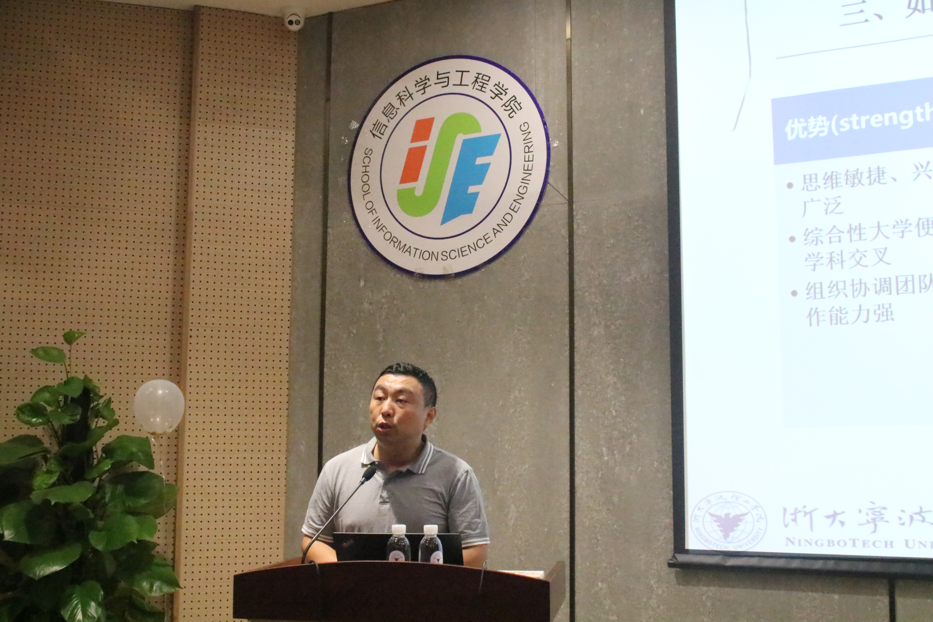 在“我与竞赛的故事”环节中,荣获第十二届“挑战杯”省一等奖的吴海旭同学,讲述了“他与‘挑战杯’”的故事。他鼓励大家在大学期间多参加实践项目,在实践中去发现生活中的“痛点”并思考,努力用自己的能力做出改变并形成体系。荣获第六届“互联网+”大学生创新创业大赛省级铜奖的张俊卿同学讲述“他与‘互联网+’”的故事。他详细讲述了做项目具体注意事项,从项目取名到招募团队、从项目分工到产品研发,干货满满。荣获浙江省大学生电子设计竞赛一等奖的郁威同学分享了“他与电子竞赛”的故事,他向我们介绍了什么是电赛、比赛类型、竞赛方式、以及比赛流程,多维度给大家展示了电赛的“别样魅力”。最后,荣获全国大学生智能汽车竞赛省三等奖的孔波波同学分享了“他与智能汽车竞赛”的故事,介绍了该竞赛的内容以及比赛规则,其中所需知识涉及控制、传感技术、计算机、机械等多个学科,鼓励大家努力学习基础知识,共创佳绩。