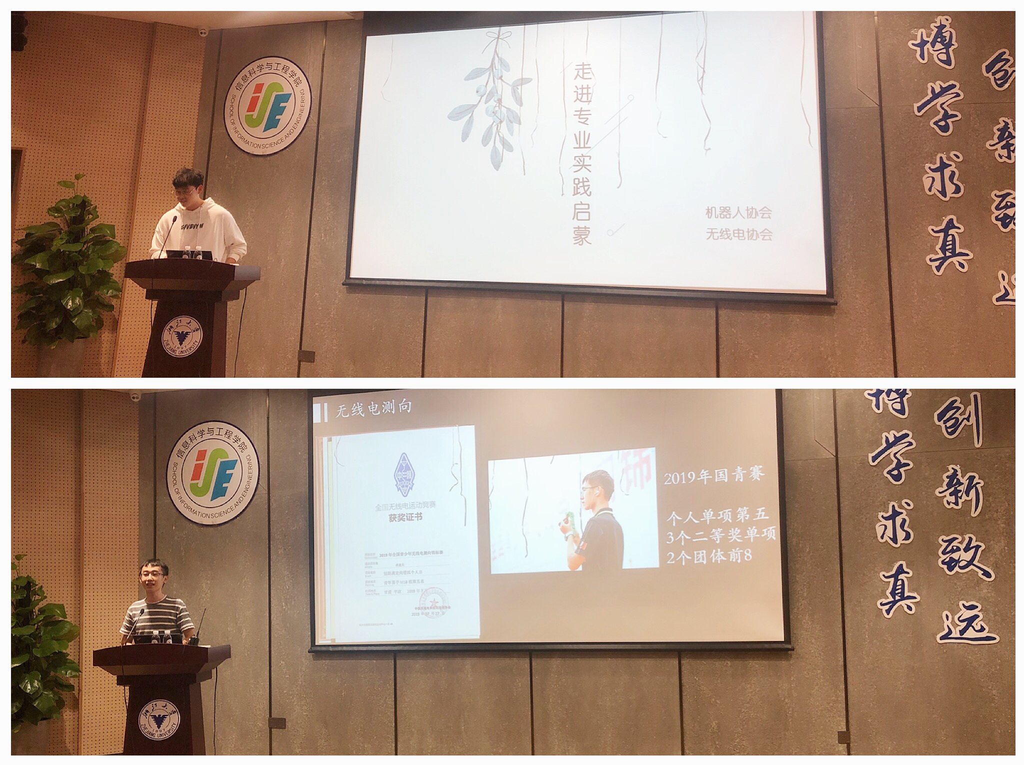机器人社团和无线电社团负责人给大家开启了社团的启蒙之路。他们介绍了机器人和无线电的基本内容,以培养新生专业素养为目的,加强编程能力、硬件基础、电子制作等方面的基础知识,鼓励感兴趣的新生们加入社团,希望未来在各项竞赛中能取得佳绩,为信息学院增光添彩。