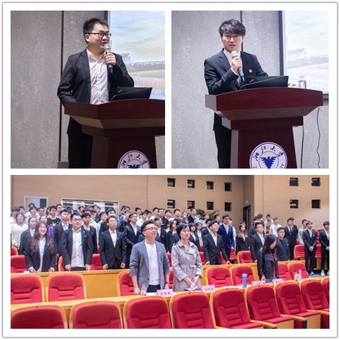 杜明珠和董俊娜为新一届主席团和部长颁发聘书。金智展在讲话中讲到大学的本质是做人、做事、做学问,他希望同学们利用团学青平台,更加严格要求自我,树立全局观,灵活转变思维方式,不断改进工作方式方法,提升综合素养。