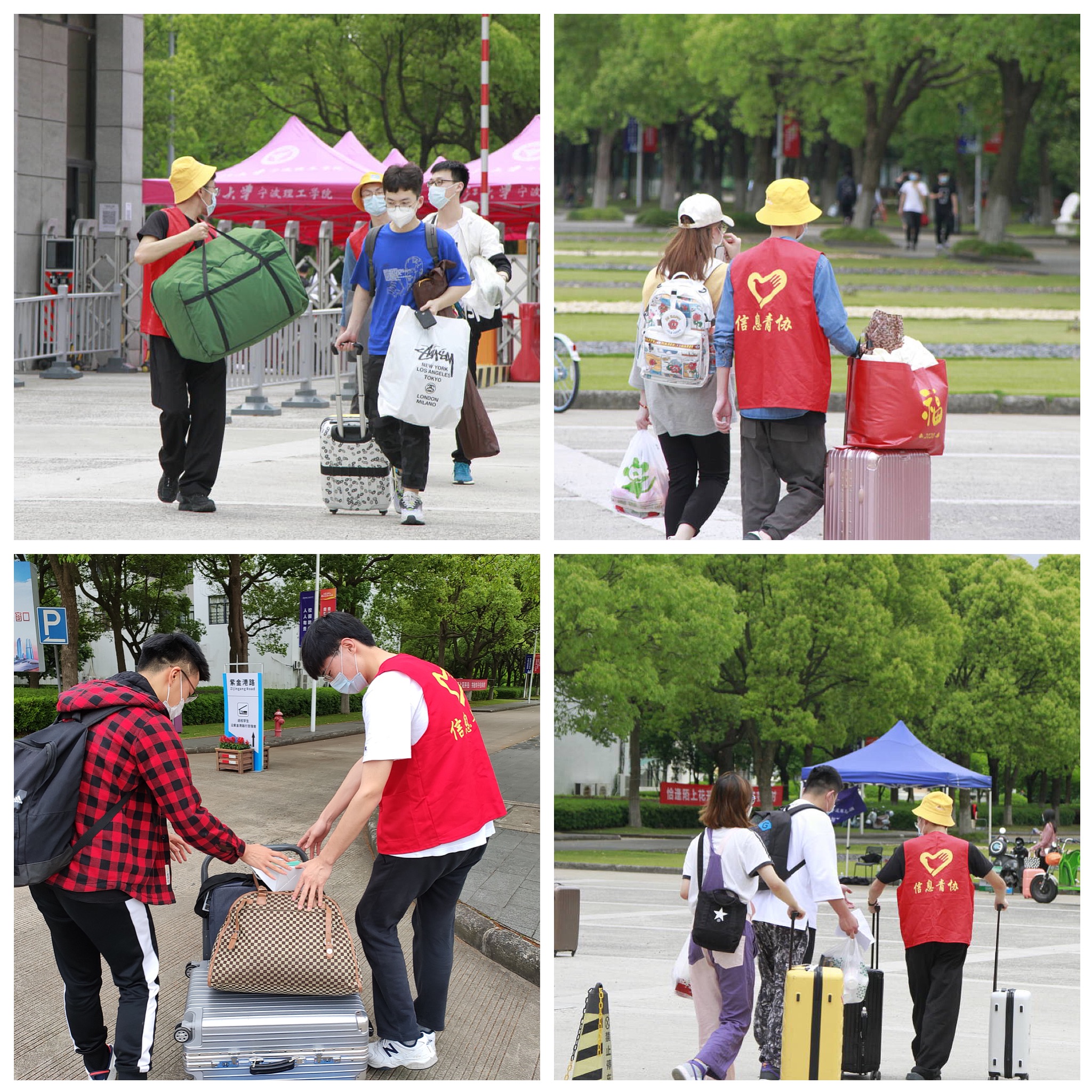 “同学你好!欢迎回校,请带好口罩,排好队,前后保持安全距离,谢谢!”、“同学你好,我们来帮你提行李吧,走出地铁站就可以直接坐上返校专车直达学校。”随处都能听到的话语,展现出信息学子深入推进志愿服务活动,弘扬“奉献、友爱、互助、进步”的志愿服务精神,充分发挥先锋模范带头作用。