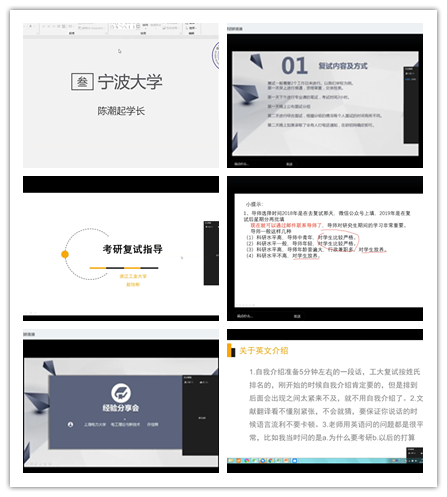 2020届考研学子们经历了考研初试的洗礼,如今又备战在复试的一线。为帮助考生从容应对复试挑战,学院邀请了2018、2019届上研的优秀校友们带来了精彩纷呈、干货满满的复试经验“云上”交流会。来自杭州电子科技大学、浙江工业大学、宁波大学、上海电力学院等6位校友们,围绕复试内容与流程,所在院校专业及导师情况,各位校友精心准备,倾囊相授,热情分享了各校复试的心得体会和复试建议,听众们收获满满。