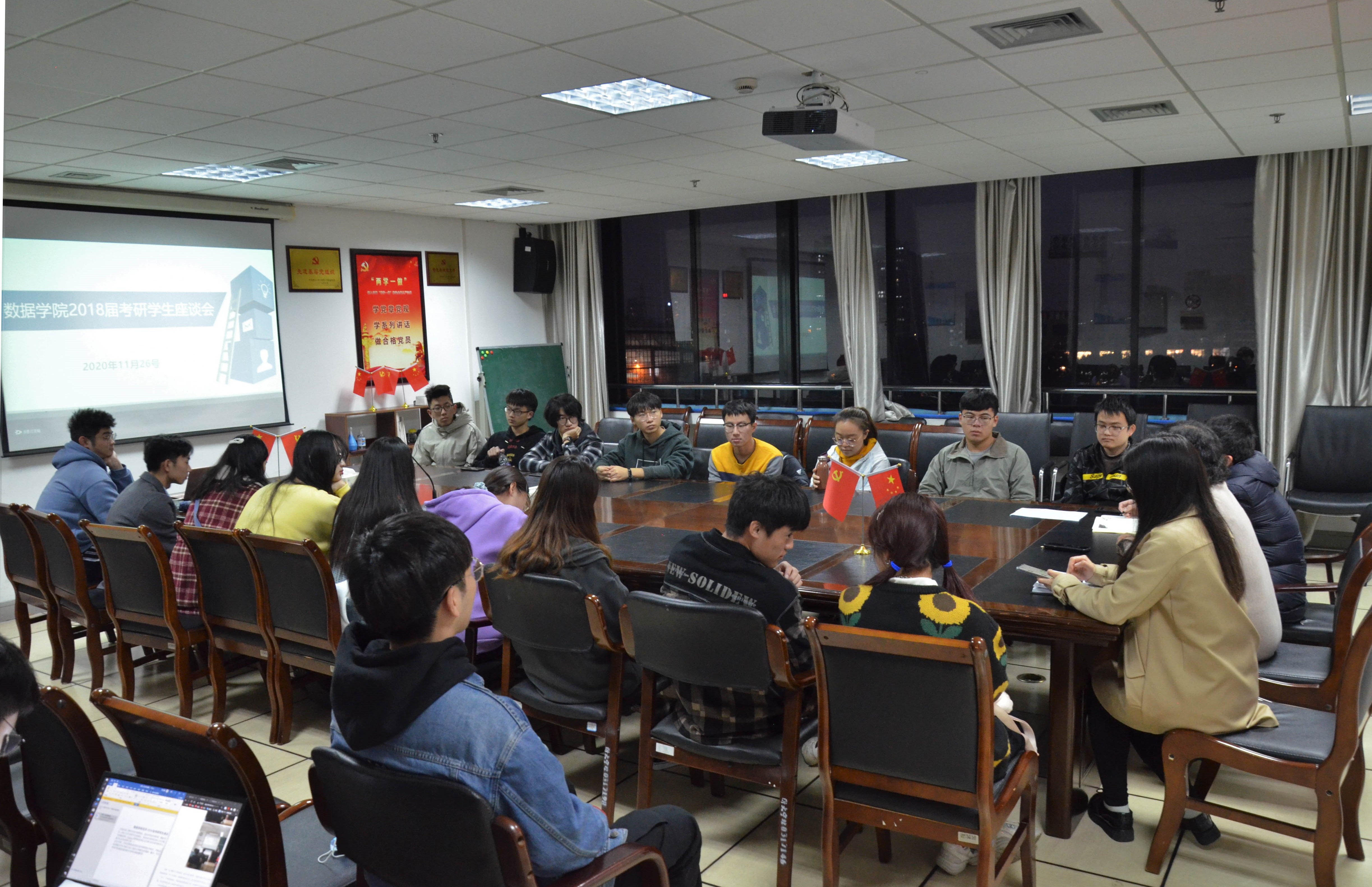 为更好了解学生考研情况,尽早启动学院18级考研工作,数据学院于11月26日在SL602召开考研学生座谈会,参加本次座谈会的有学院党委副书记汪洪,学工办马炜栋、黄梦迪和2018级考研学生代表。