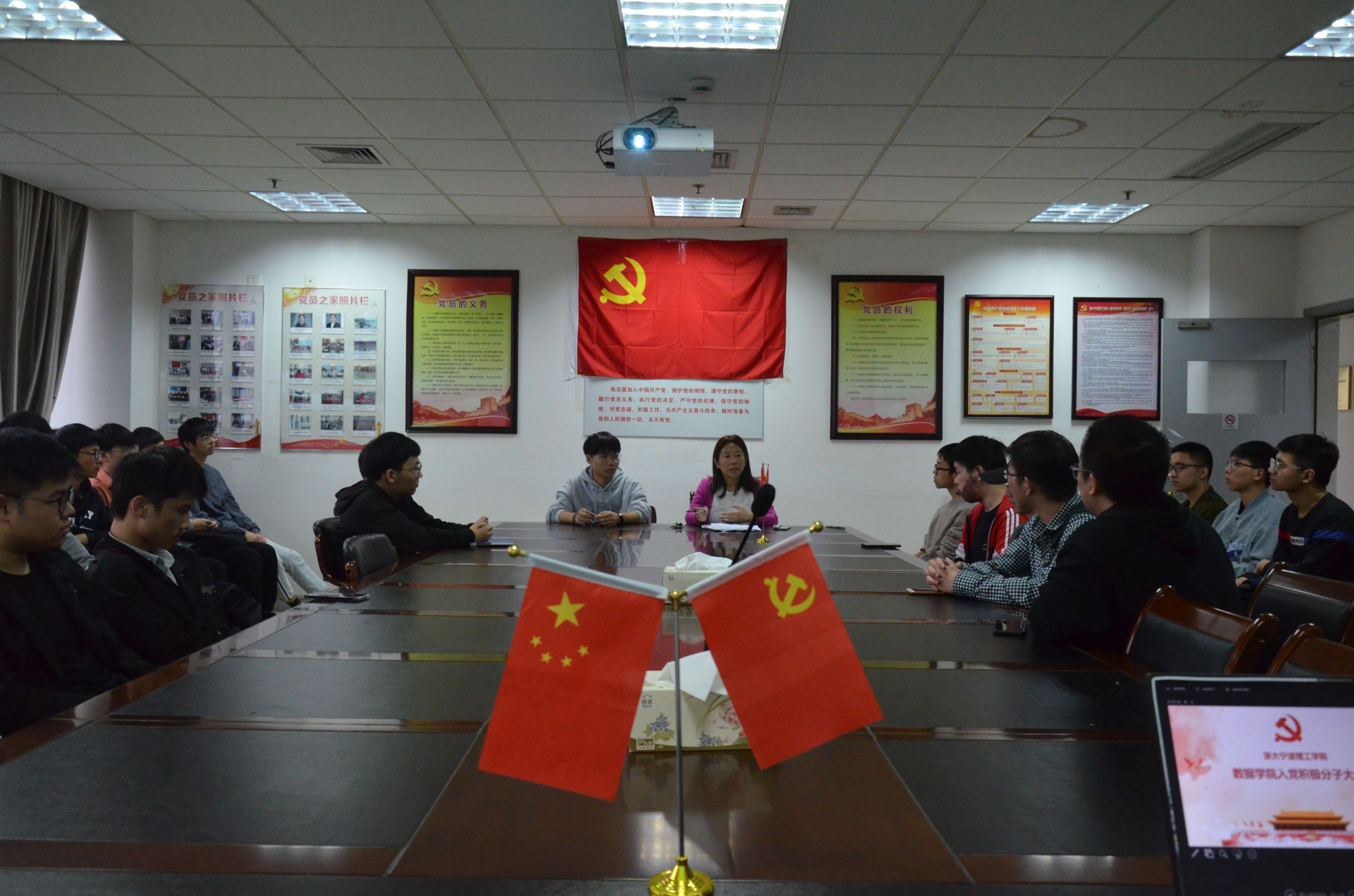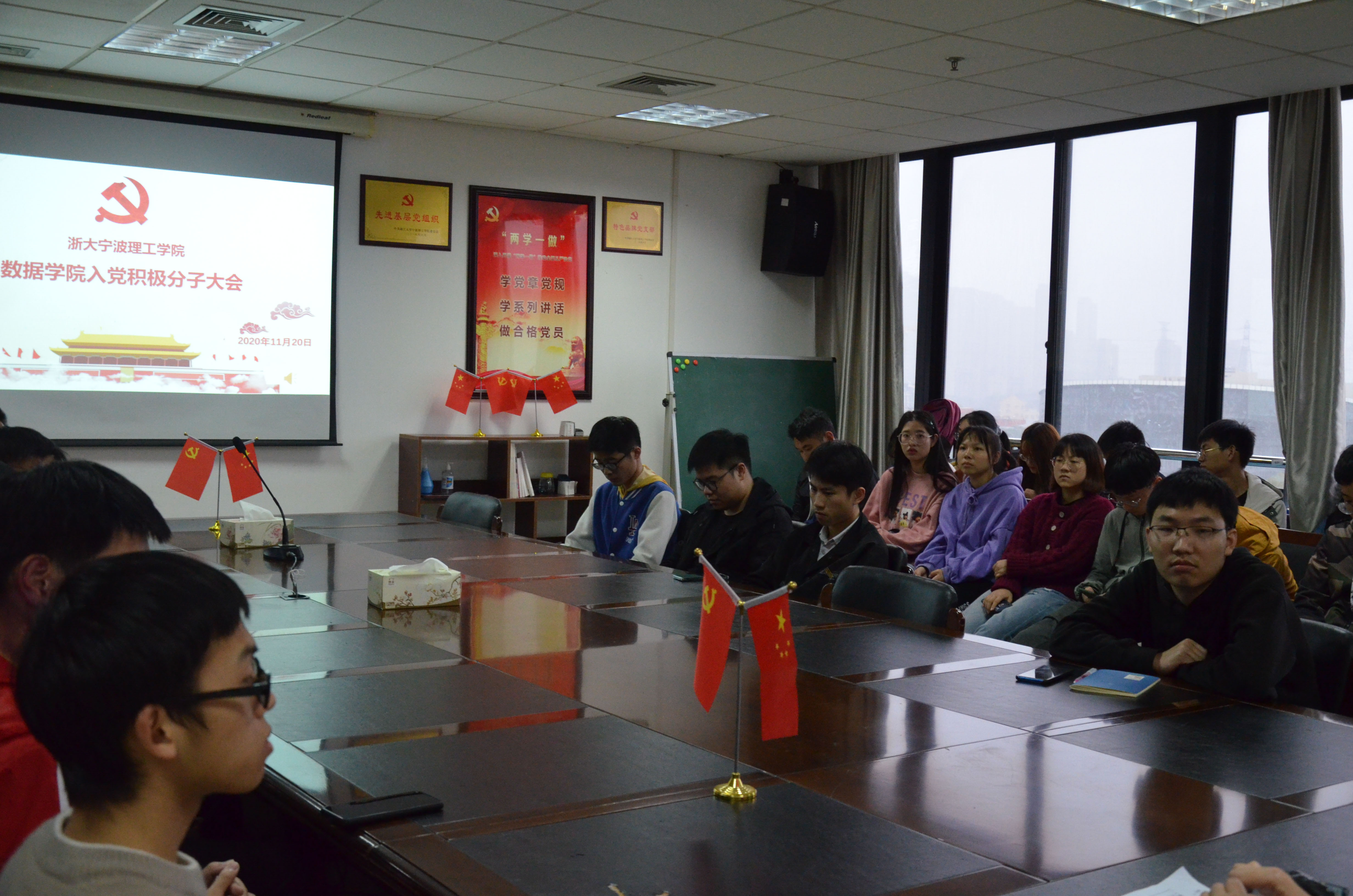 2020年11月20日,数据学院入党积极分子大会在石麟大楼602党员之家举行。参加人员有学院党委组织委员王常青、党务助理汪炼晋以及2018和2019级入党积极分子。