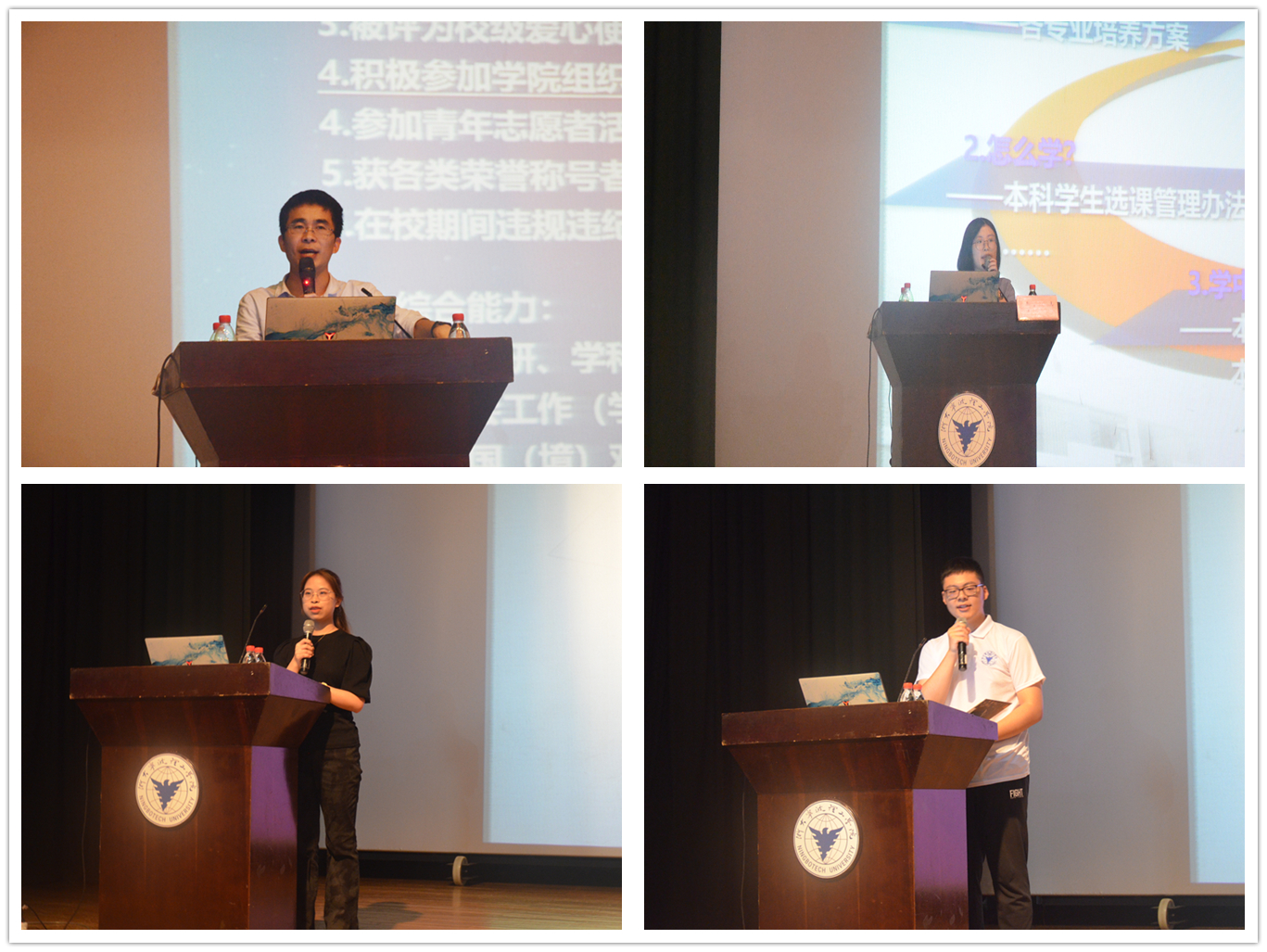 会议还安排了规章制度相关培训,由教务办邓如婷老师和学工办马炜栋老师讲解。新生辅导员奚捷捷老师进行最后总结,并祝全体新生学有所成,度过一个充实而有趣的大学时光。