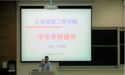 2020年5月27日晚18:30分,土木建筑工程学院在SB102举行了学生考研辅导讲座,学院党委书记王银辉主讲,思政副主管张腾老师主持,全体大三学生参加。