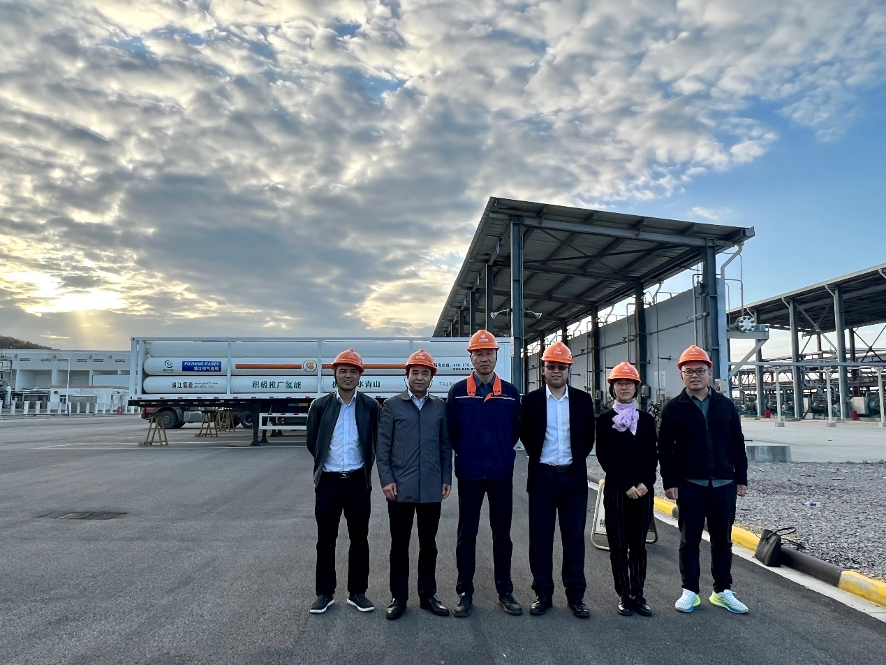 毕晓林带领大家参观了公司的加氢站,就氢能储运、利用等方面提出可以从联合攻关技术难题着手,逐步与浙大宁波理工增进交流,深化合作,实现双赢。