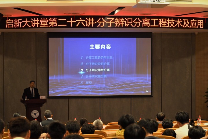 启新大讲堂里,理工师生济济一堂,共同聆听任院士的精彩报告。任院士从分离工程趋势与挑战、分子辨识吸附分离、分子辨识萃取分离、分子辨识膜分离以及分离工程的展望5个方面,为大家介绍了分离工程在化学工业中的重要性,以及其科研团队在生物活性物质高效分离方面的研究和所取得的突破。