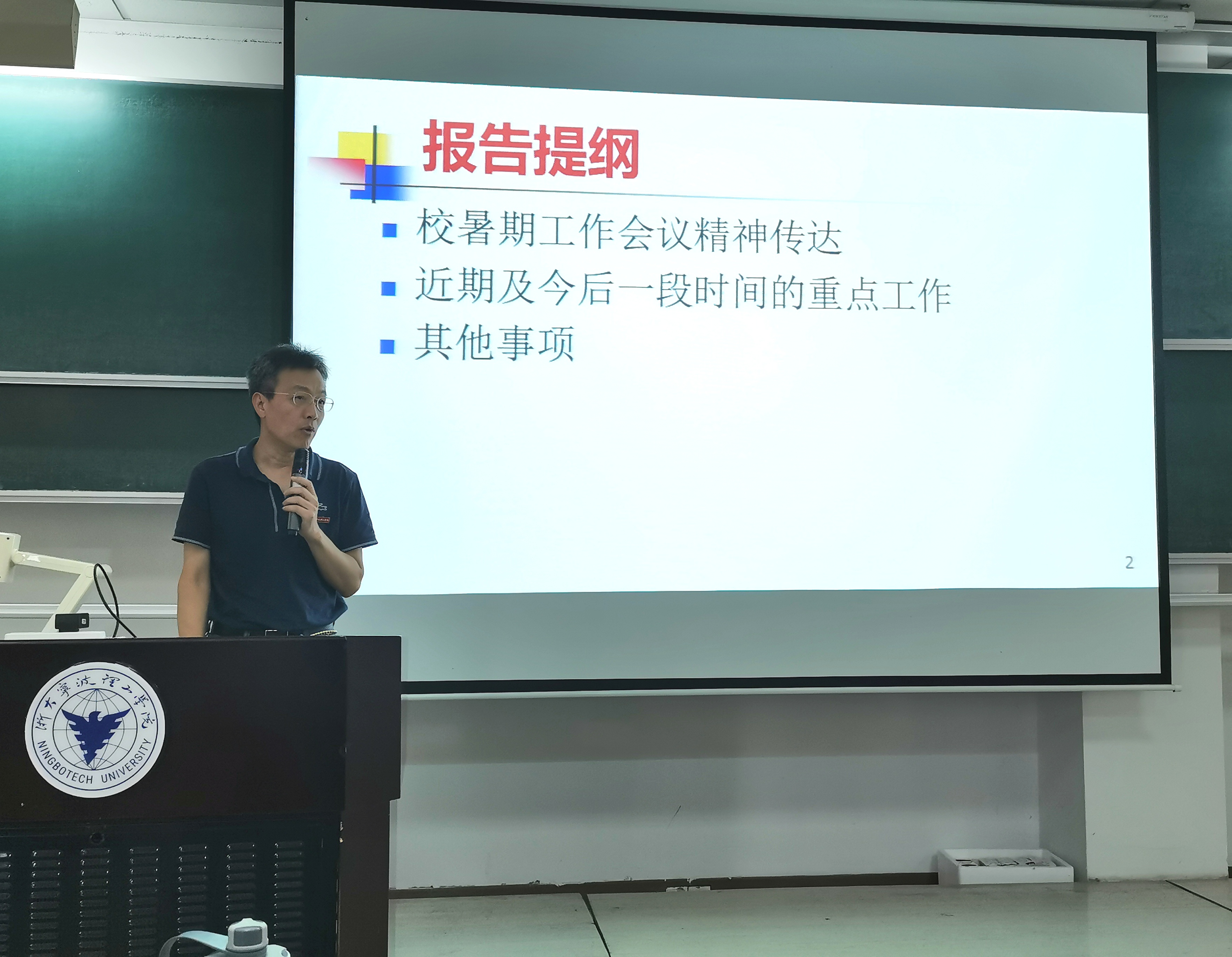 会上,学院院长方征平传达了学校暑期工作会议精神,强调要站在二十年办学新起点上,深化对习近平总书记任职浙江期间来校考察时重要指示精神的学习,坚持立德树人根本任务,为学校“十四五”事业发展全力以赴开好局、起好步。围绕学校学科建设计划、学院年度综合绩效考核实施办法进行解读和说明。
