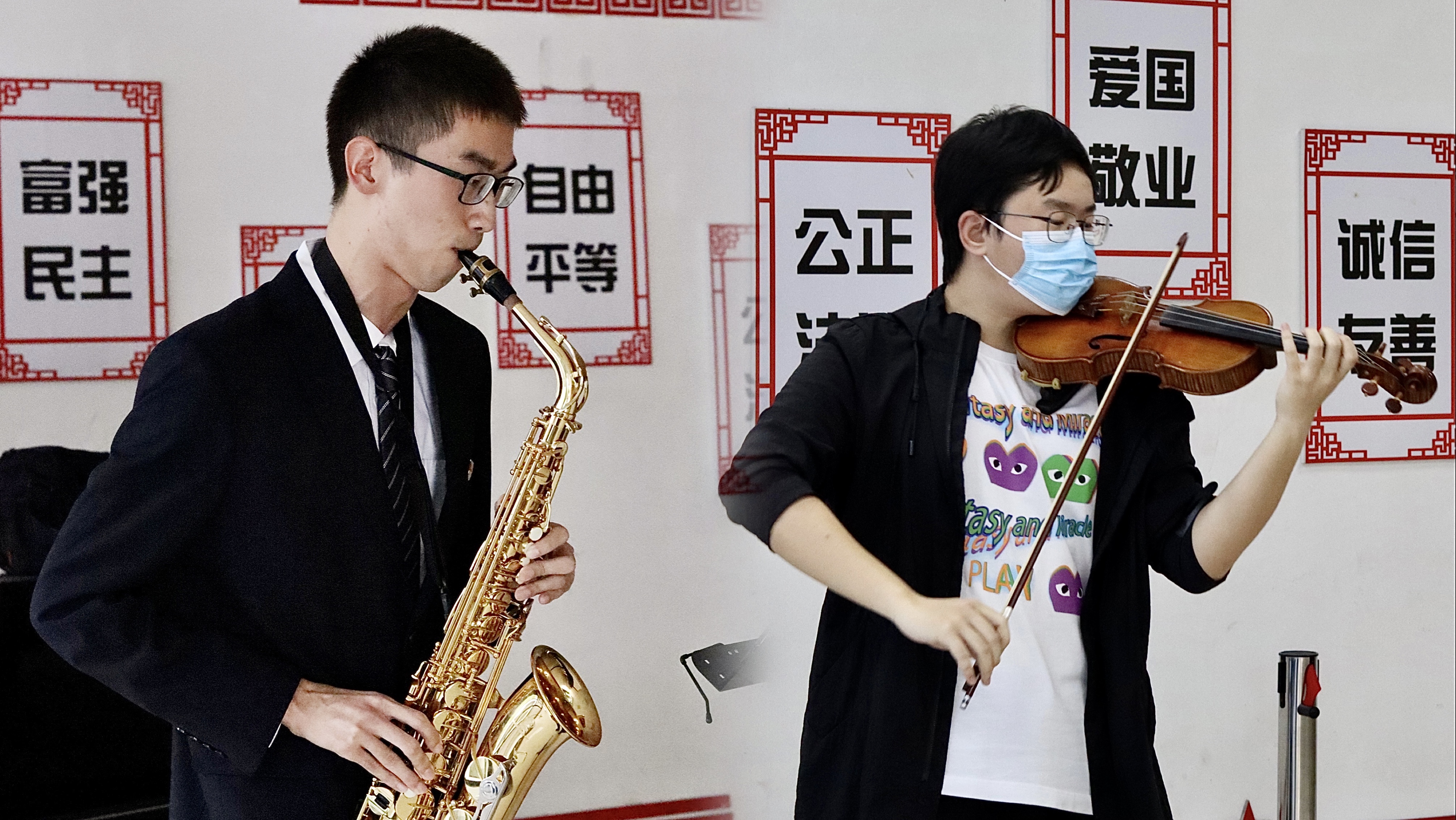 此次“校园艺术快闪”展现形式多样,吸引来往师生驻足观看,活动现场气氛热烈。“心声”合唱团在sc大厅为师生们呈现各种经典合唱曲目,清亮悦耳的歌声飘荡在各个角落;“心动”舞蹈团闪现了充满热情活力的各类舞蹈,现场同学热情高涨积极参与。“新梦境”器乐团进行小提琴和萨克斯演奏,展现了音符跳动的澎湃力量,此外,还在活动现场放置一台共享钢琴,使广大师生能够亲身体验音符在指尖跳动的魅力;“初心”礼仪团典雅高贵、落落大方的台步成为露天广场一道靓丽的风景线;“三叶”话剧团在露天广场的相声表演,引得路过的同学们听得津津有味;“金话筒”主持团的团员们则用街访的形式,与同学们热情互动,希望以此进一步加深同学们对艺术的了解;“欣艺”戏曲团的团员们用专业的妆造再现了京剧里虞姬和贵妃的风采,让师生们切身感受戏曲文化的魅力和文化自信的内涵。
