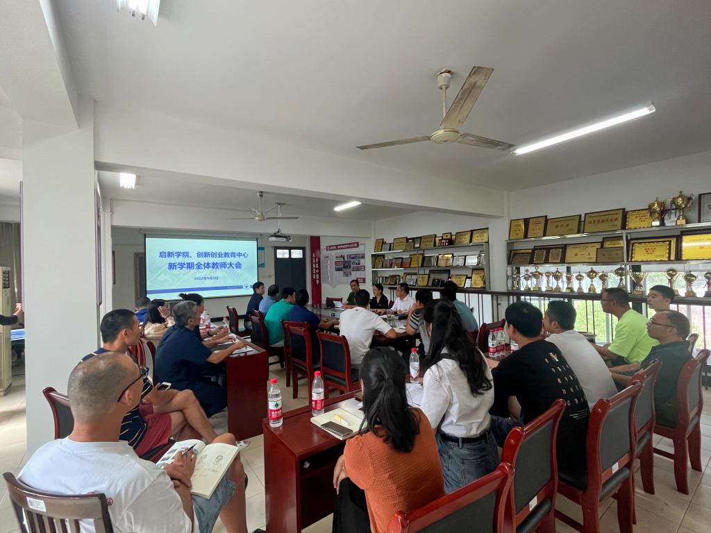9月9日中午,启新学院、创新创业教育中心在游泳馆201-1会议室召开新学期全体教师大会。学院班子成员与全体教师参加了会议,会议由学院副院长廖海鹏主持。