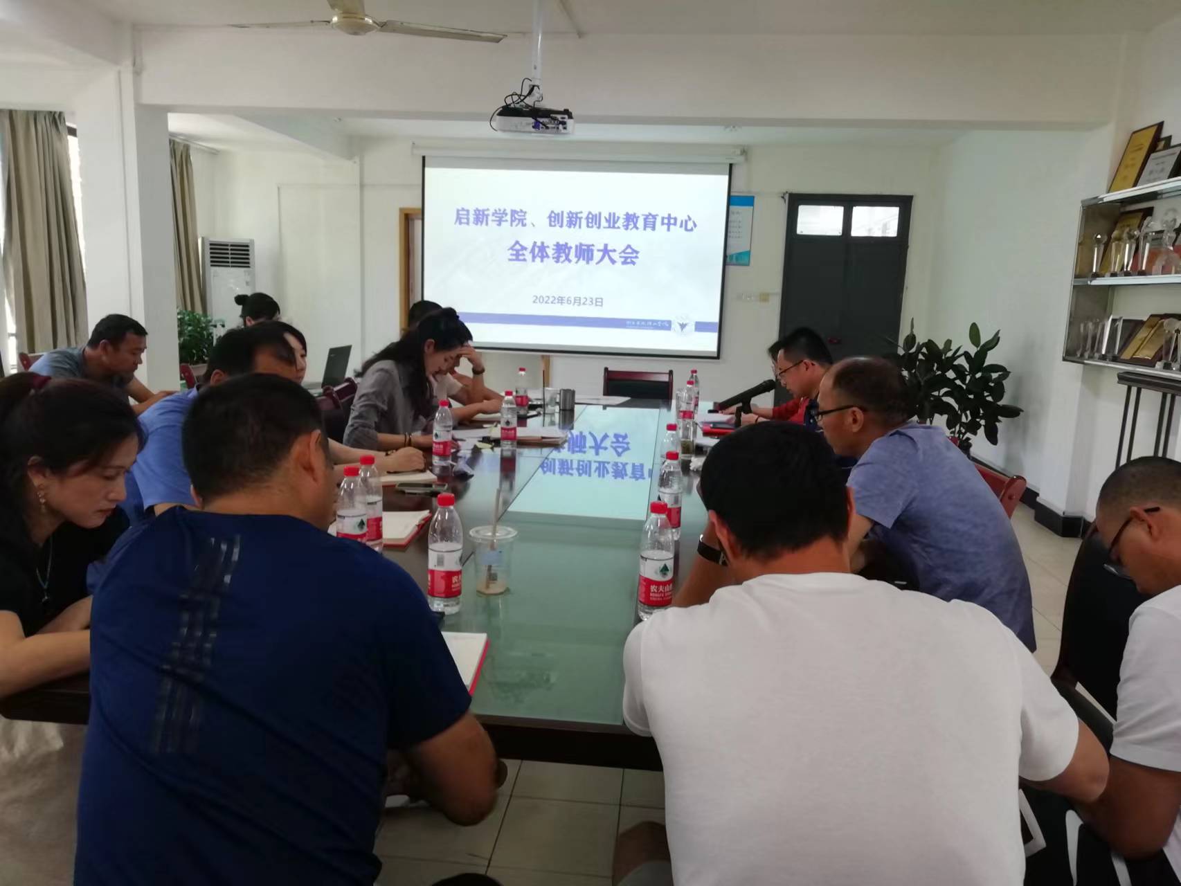 为推进党建与业务深度融合,助推学院事业更好更快发展,2022年6月23日,启新学院、创新创业教育中心组织召开全体教师大会,会议由启新学院院长戴革萍主持。