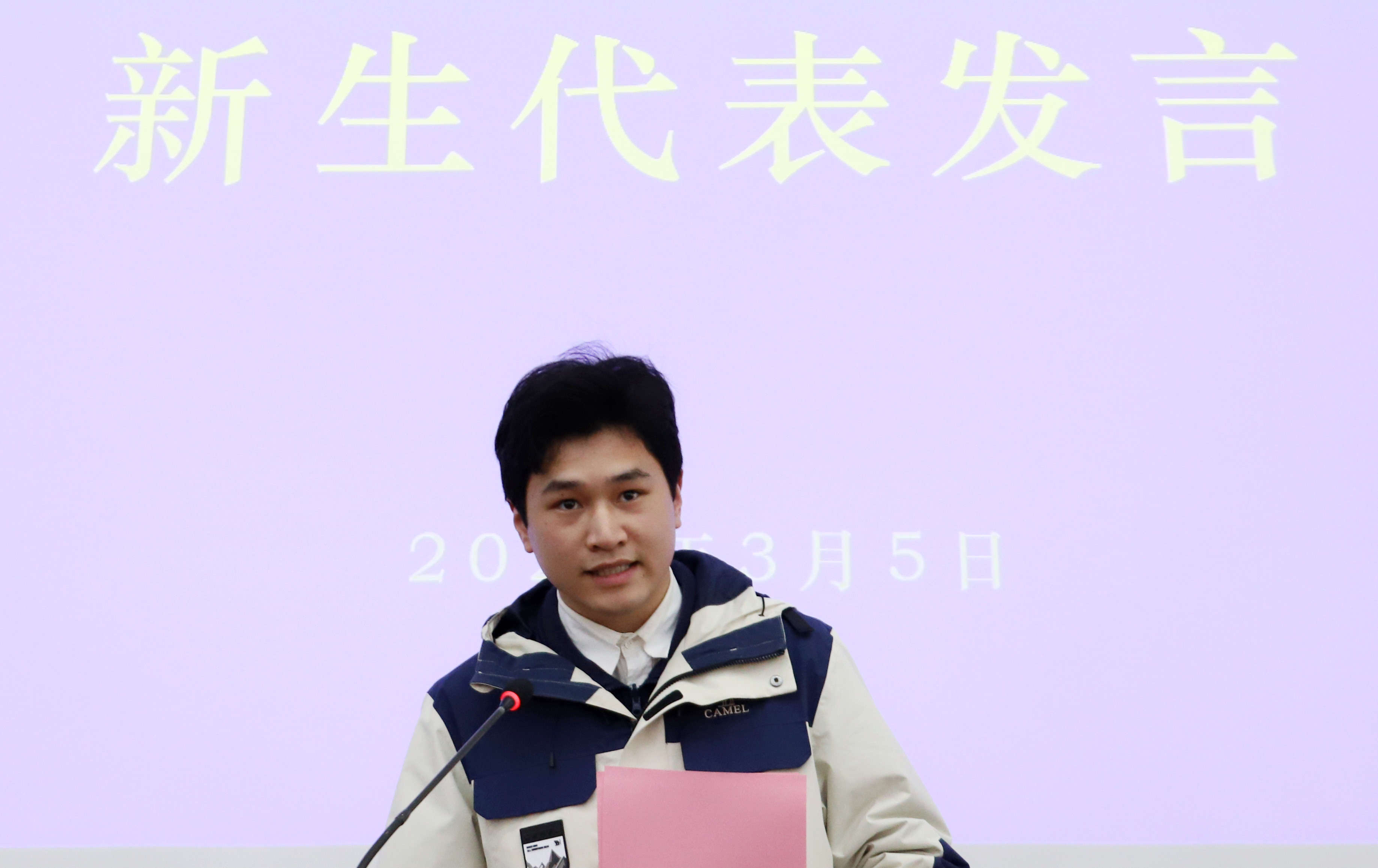 新生代表丁佩升有感于自己的亲身经历,强调了学习和知识的现实重要性。他激励同学们共同进步:“几年后,当我们满载收获,向更高的目标迈进时,将无悔于今天的选择,愿我们在今后的学习中与浙大宁理一起再创辉煌!”