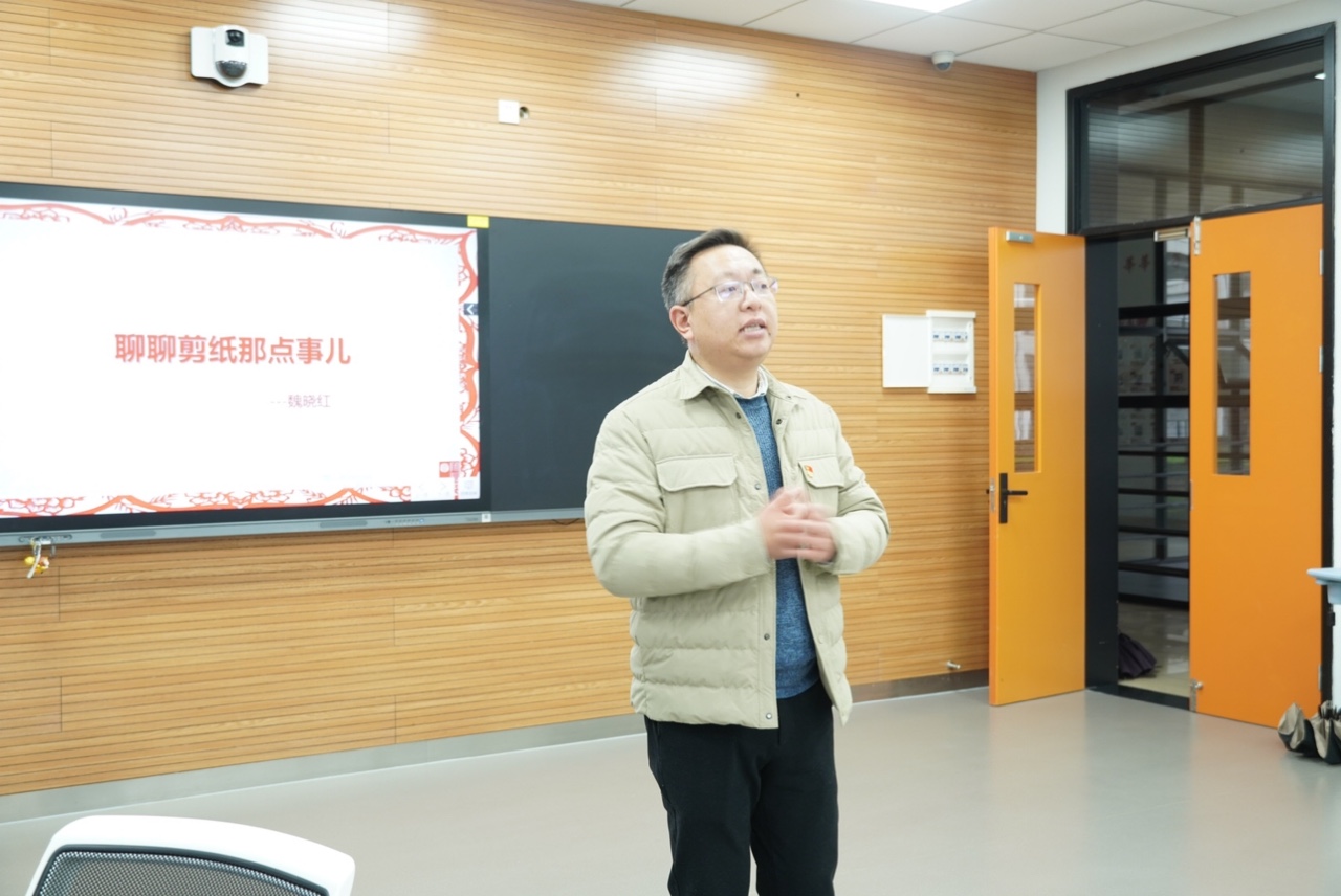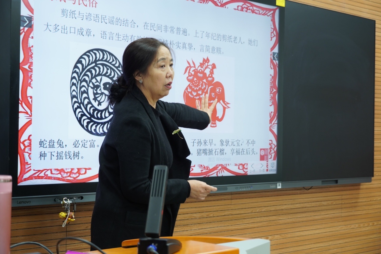 活动的第二部分,由魏晓红介绍剪纸文化,并娓娓道来自己的剪纸经历,随后她展示了自己近年来的代表性剪纸作品并现场展示了高超的剪纸技艺,引来在场师生的阵阵赞叹。