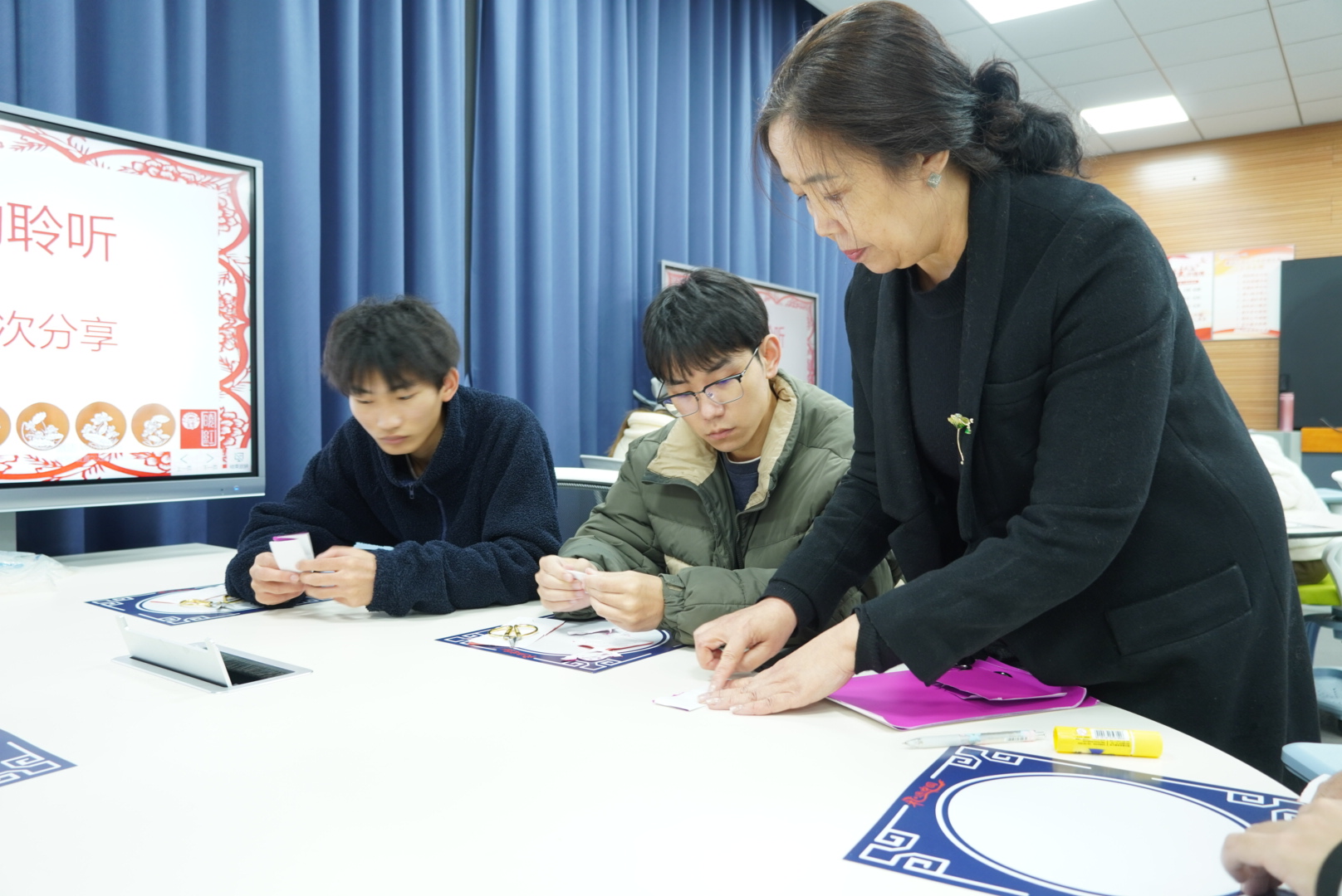 活动的第三部分,在场师生在魏晓红的指导下开始创意剪纸,大家从最基础的“蝴蝶”到“廉”字再到“警钟”,沉浸在剪纸谨小细微又欲罢不能的乐趣中,部分同学还挑战自我进行了盲剪,并积极向魏晓红咨询剪纸技巧,现场氛围轻松、热烈。
