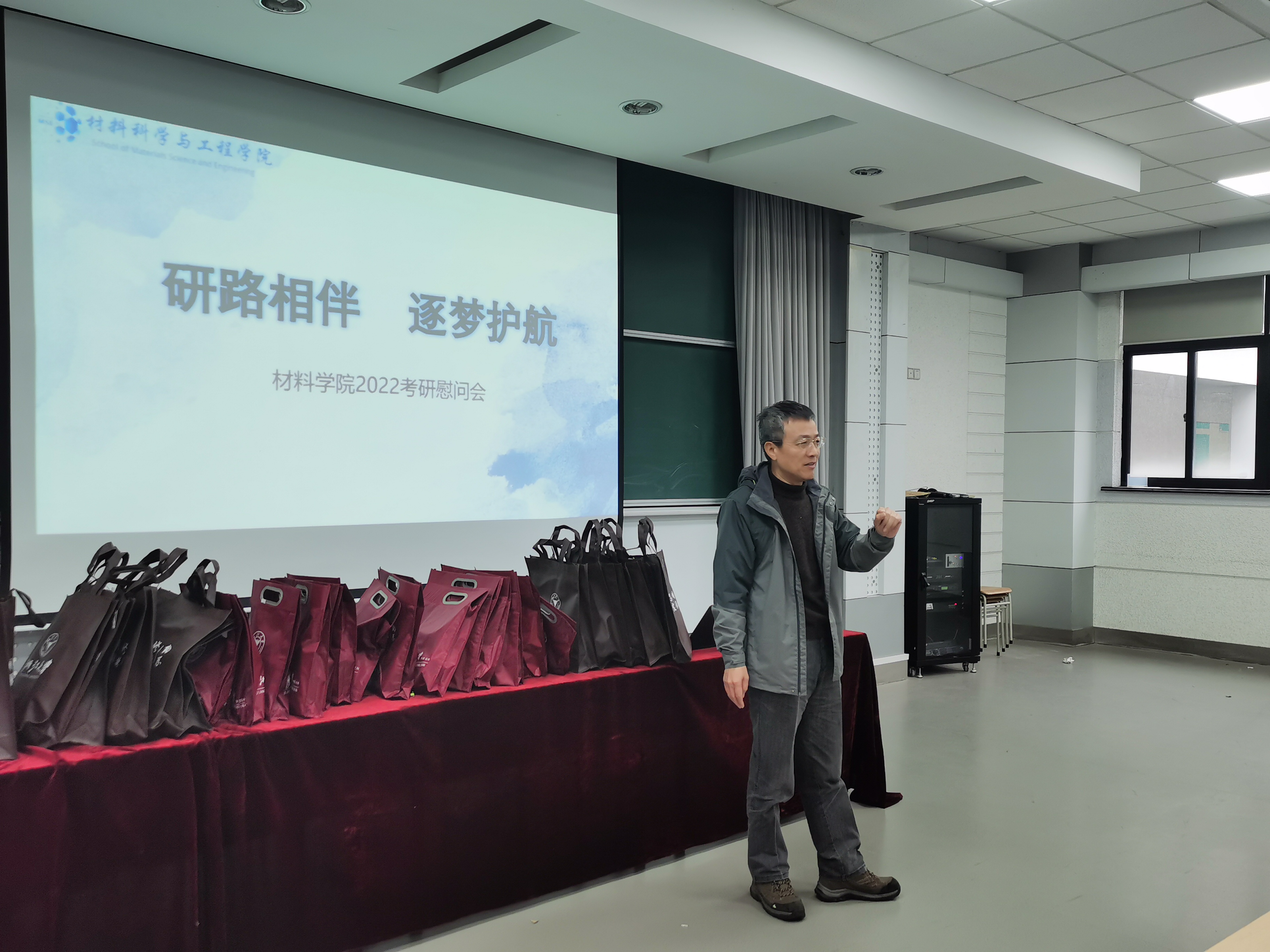 寒潮袭来,2023届考研也进入倒计时阶段。为帮助考研学子缓解备考压力,坚定考研冲刺信心,12月1日上午,材料学院举办2023届考研学子慰问活动。学院院长方征平,党总支书记俞峰,思政副主管包静昇到材料学院考研自修教室NC202慰问材料学院2023届考研学生,为我院考研学子送上暖心礼品和最真挚的祝福。