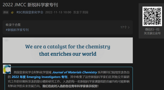 图1.钟宇飞教授入选英国皇家化学学会(RSC)J. Mater. Chem. C2022年新锐科学家专刊