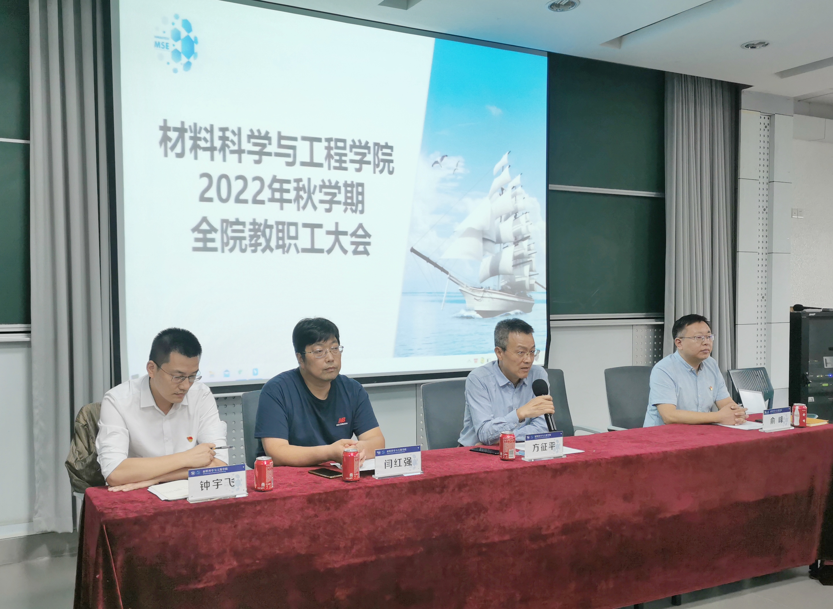 2022年9月2日,材料学院召开新学期全院教职工大会,学院全体教职工参加会议。会议由学院党总支副书记俞峰主持。
