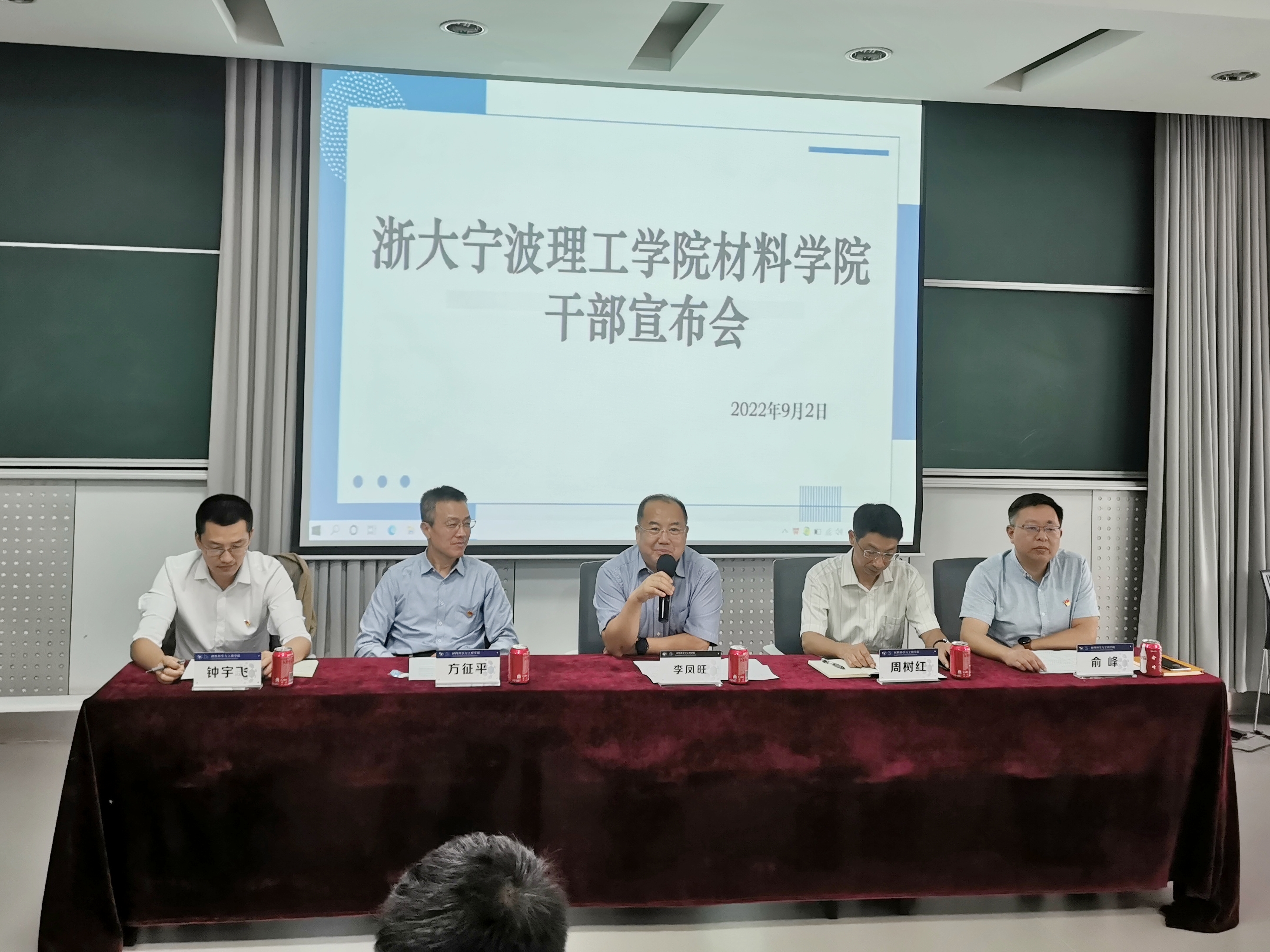 会前,由学校党委副书记李凤旺和组织部部长周树红进行了干部任命宣布。周树红部长宣布任命钟宇飞为材料学院副院长,李凤旺副书记代表学校作讲话。李副书记表示,材料学院聚焦新材料科技前沿,契合国家发展战略新兴产业,有自己特殊的使命和机遇,希望学院领导班子能够高站位谋事、高质量成事、高要求自律,齐心协力,把学院的发展推向新的高度。