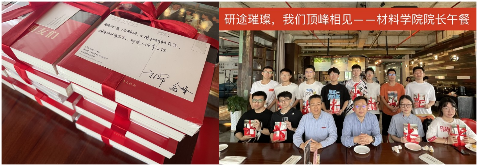 午餐会期间,方征平院长与俞峰书记向毕业生赠予了图书,激励大家未来敢于创新,勇于拼搏。俞峰表达读研是个不错的选择,既可以使热爱科研的同学投身梦想,也能成为未想好未来道路的同学的过渡期。方征平与各位即将踏上研究生道路的同学们积极交流,结合自身经历与大家分享经验。这是一场征程的结束,也是另一段旅途的开始,是各位毕业生的启发地与新起点。