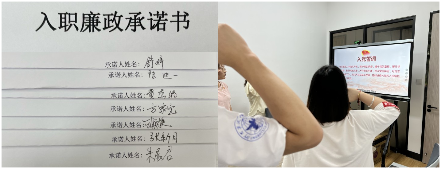 大会的第一项议程,奏唱国歌,庄严的国歌声深入各位党员同志的心里,作为党员,要时时刻刻注意自己的言行举止。在材料学院学生第一党支部书记包静昇的领誓下,全体党员重温入党誓词,展示了党员们坚定不移的政治信念,对中国共产党的忠诚奉献。大会第二项议程,各位毕业生党员庄重签署了廉政承诺书,承诺着在新的征程中要继续保持党员的纯洁性。最后,包静昇向各位毕业生党员讲解了党组织关系转接、党员档案派送等重要事项,激励各位党员无论身处何地都要积极联系群众,不忘入党初心。