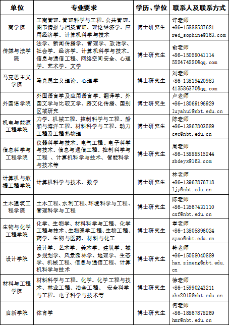 请将个人简历(包括个人基本信息、学习和工作经历、主要学术成果等)发送至:zrsc@nbt.edu.cn,邮件标题为“姓名+专业+应聘学院”。