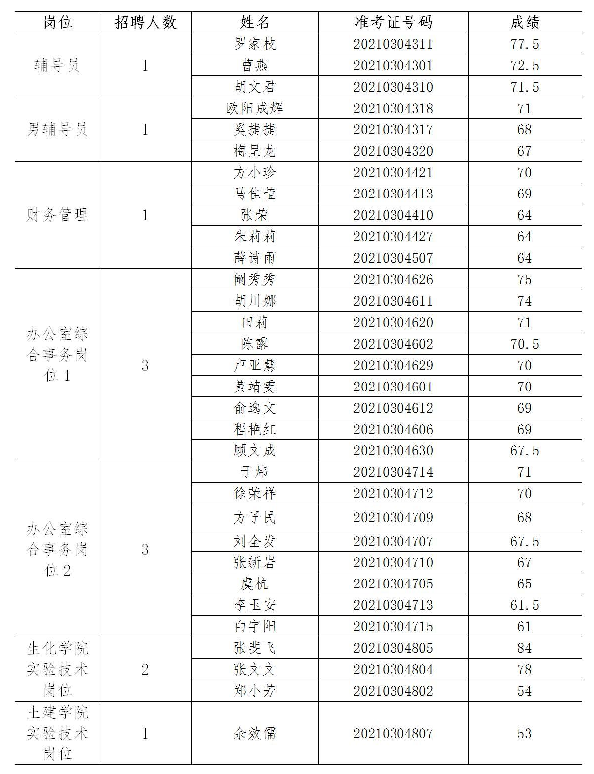 开云kaiyun官网公开招聘事业编制工作人员笔试已结束,现将笔试成绩予以公布。根据《宁波市事业单位公开招聘工作人员实施办法》和《2021年开云kaiyun官网公开招聘事业编制工作人员公告》(2021年4月20日)要求,按照笔试成绩从高分到低分按1:3比例确定面试对象(分数并列时均按实际考分排序进入面试),现将有关事项通知如下: