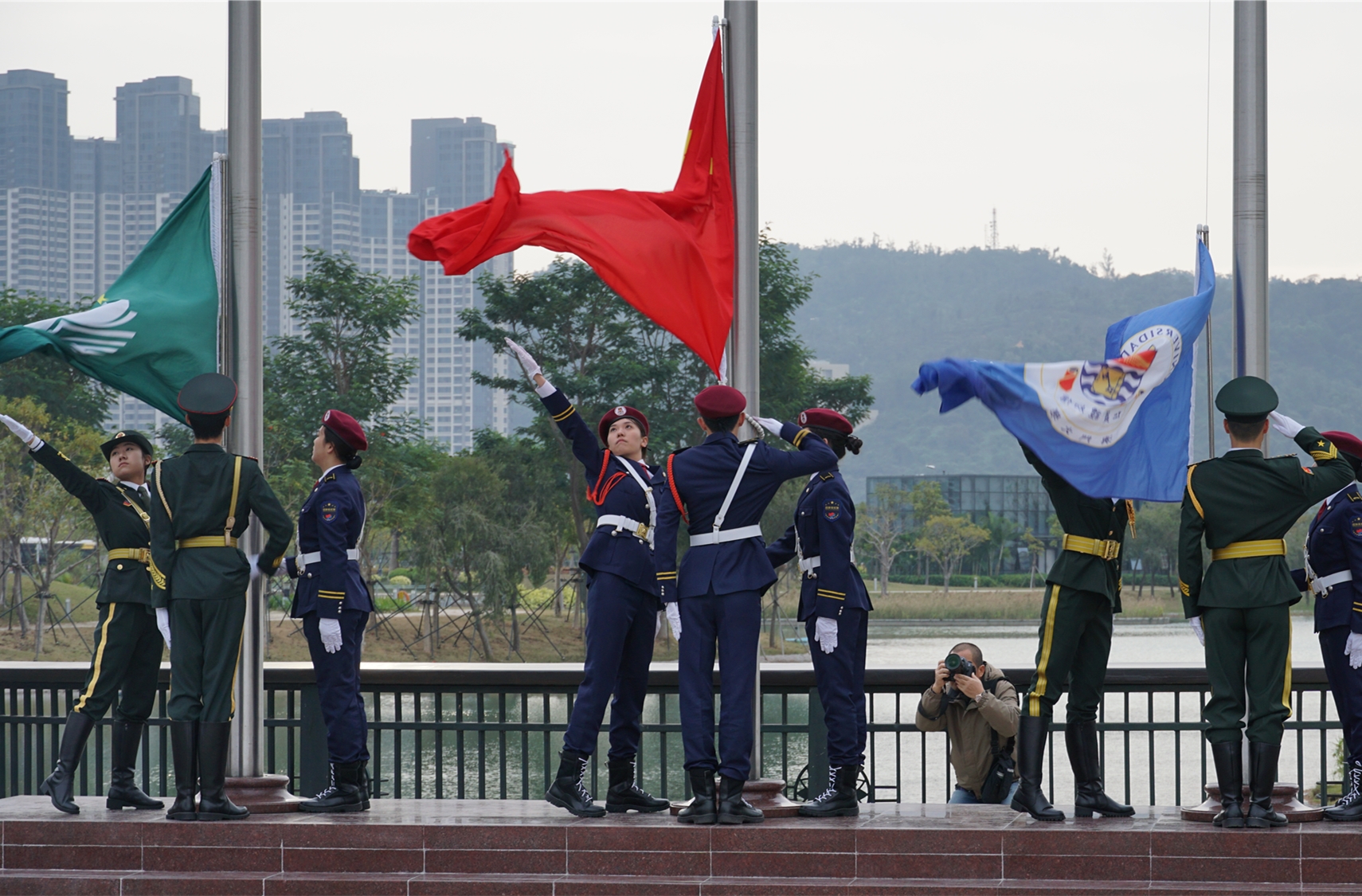 为庆祝澳门特别行政区成立20周年,应澳门大学邀请,12月18日-20日,浙江大学宁波理工学院国旗护卫队12名同学,由党委书记胡征宇率队赴澳,与清华大学国旗仪仗队、澳门大学国旗仪仗队联合举行“双手护国旗,铁肩承两制”京浙澳大学生澳门回归纪念日升旗仪式,并参加相关庆祝活动。12月20日早上8时整,来自澳门大学国旗仪仗队、清华大学国旗仪仗队、浙江大学宁波理工学院国旗护卫队共42人组成的联合升旗方队穿着整齐的制服,迈着...