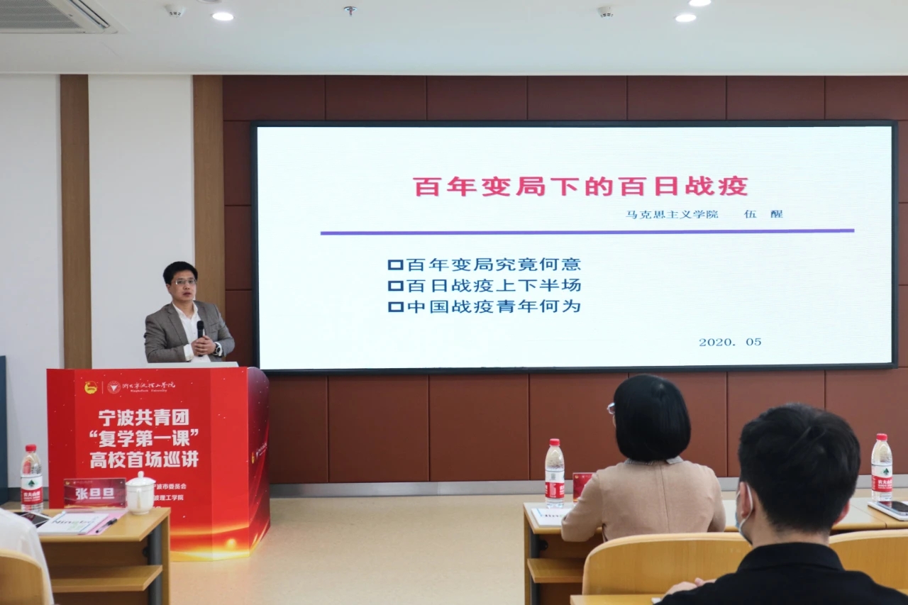 把打赢疫情防控阻击战作为加强青年制度自信教育的生动教科书。5月22日,宁波共青团“复学第一课”高校首场巡讲在开云kaiyun官网开讲啦!团市委副书记俞欢欢、学少部部长张旦旦,开云kaiyun官网党委副书记冯建波、学校团委和基层团支部师生代表一同参加了活动。活动现场,开云kaiyun官网马克思主义学院党总支书记、副院长伍醒教授作为专家学者代表为在场团员青年讲述了“百年变局下的百日抗疫”,剖析了当前“百年未有之...