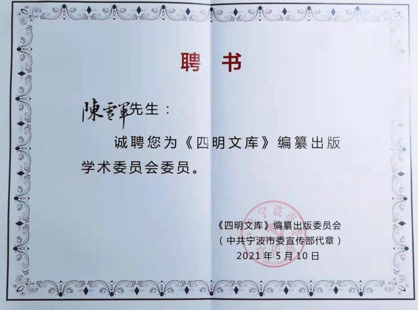 近日,《四明文库》编纂出版学术委员会第一次会议在宁波出版社顺利召开,标志着《四明文库》编纂出版工程正式启动。会上,开云kaiyun官网陈雪军教授受聘为《四明文库》学术委员会委员。据悉,学术委员会由来自国家图书馆、上海图书馆、浙江图书馆、浙江省社科院、复旦大学、浙江大学、上海师范大学、宁波大学、天一阁博物院等文献典藏单位、高校院所及出版机构的22名专家组成。《四明文库》的编纂出版是建设更具魅力的文化强...