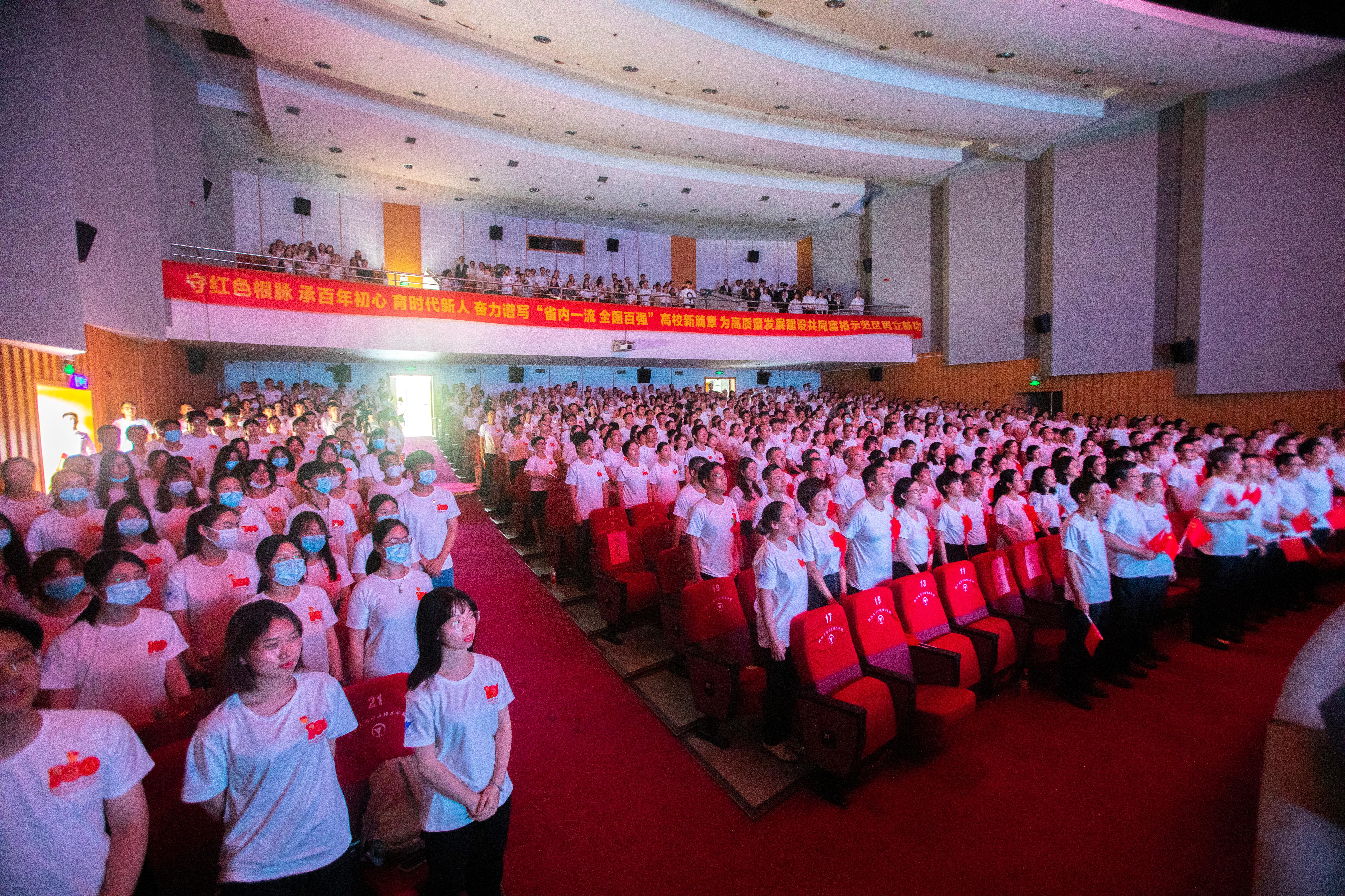 忆峥嵘岁月,颂百年风华。励青年之志,壮大国之未来。6月29日下午,学校隆重举行庆祝中国共产党成立100周年“永远跟党走——守红色根脉 育时代新人 启百强新程 创一流高校”主题党日活动。全校2058名党员、78个党支部及各民主党派负责人在今天共同过一个别开生面的主题党日、上一堂党史学习教育专题党课。党委书记胡征宇为师生上党课,党委副书记、校长杨德仁主持会议。大会在雄壮的《国歌》声中拉开序幕。《共产党宣言》(中英...