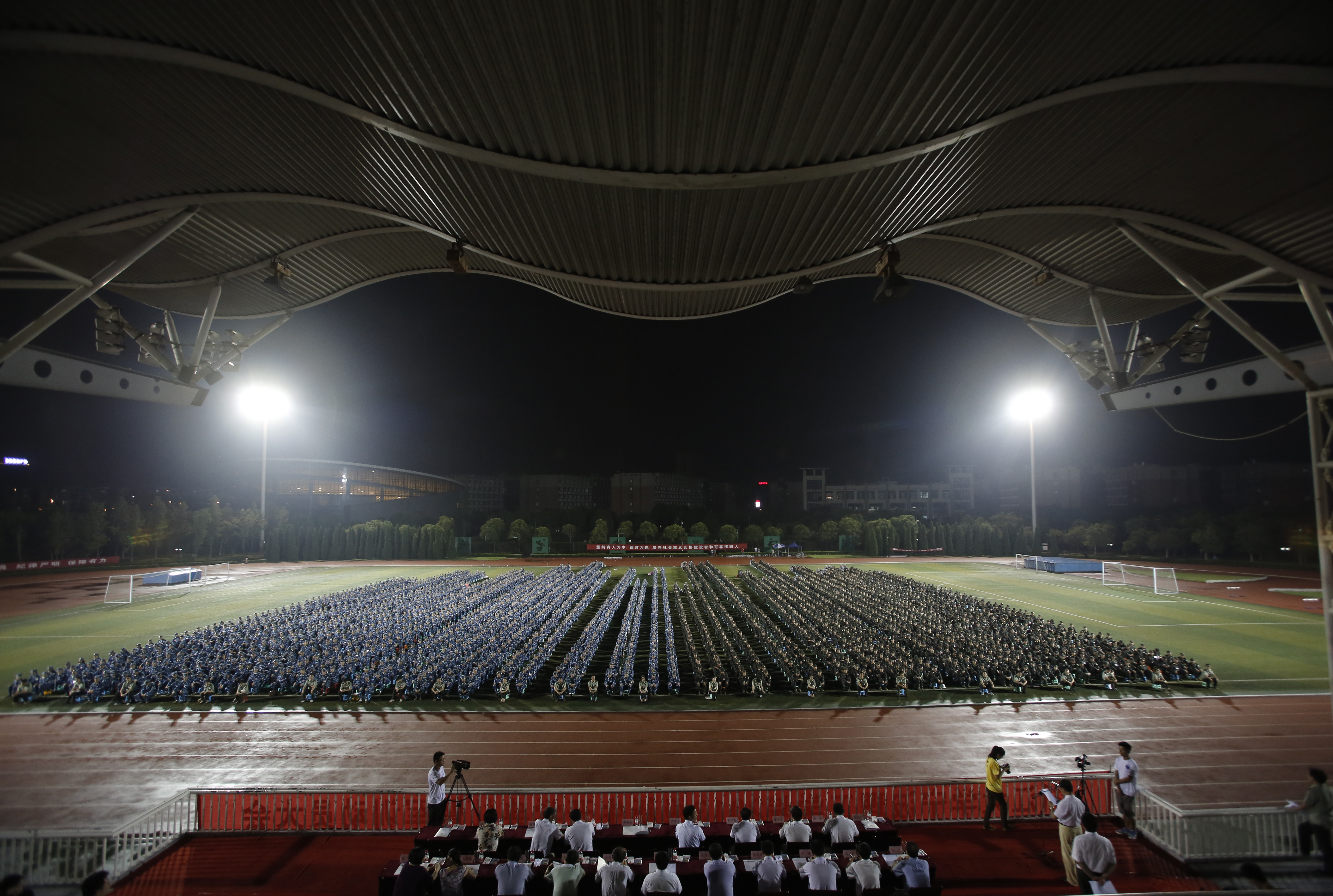 8月26日晚,伴随着雄壮的国歌,2013级新生开学典礼在北田径场举行。