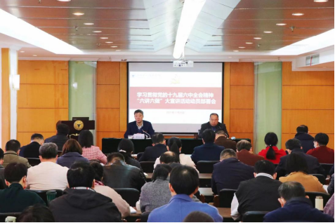 11月26日,学校召开学习贯彻党的十九届六中全会精神“六讲六做”大宣讲活动动员部署会。党委书记胡征宇宣讲六中全会精神并作动员讲话,党委副书记李凤旺主持会议并通报大宣讲活动总体安排。校党政领导班子成员,各院级党组织负责人,各部门单位负责人,党支部书记、师生党员、党外人士代表等参加动员部署会。党的十九届六中全会是在我们党成立一百周年之际,党领导人民实现第一个百年奋斗目标、向着实现第二个百年奋斗目标迈进...