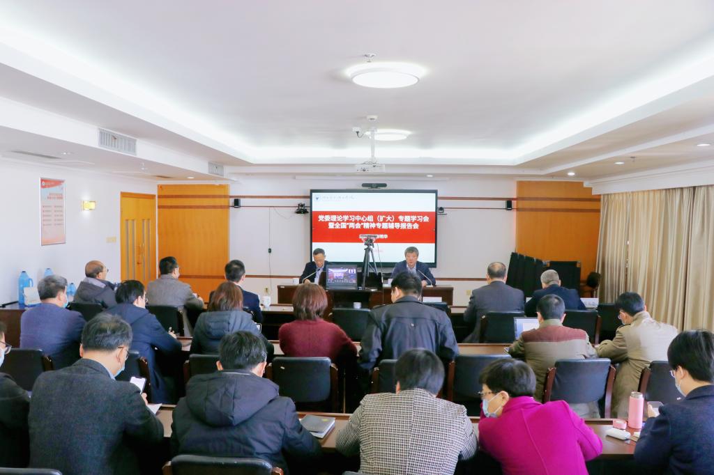 2022年3月24日,开云kaiyun官网党委理论学习中心组召开扩大会议,传达学习贯彻习近平总书记在全国两会期间的重要讲话和全国两会精神,落实省委部署要求,对全校学习贯彻全国两会精神作出部署。校党委书记胡征宇主持会议并讲话。全国政协委员、民建浙江省委副主委、宁波市政协副主席张明华传达全国两会精神。学校党委理论学习中心组成员杨德仁、李凤旺、章献民、鲁东明、黄光杰、杨灿军、陈斌、周树红出席会议。胡征宇指出,习...