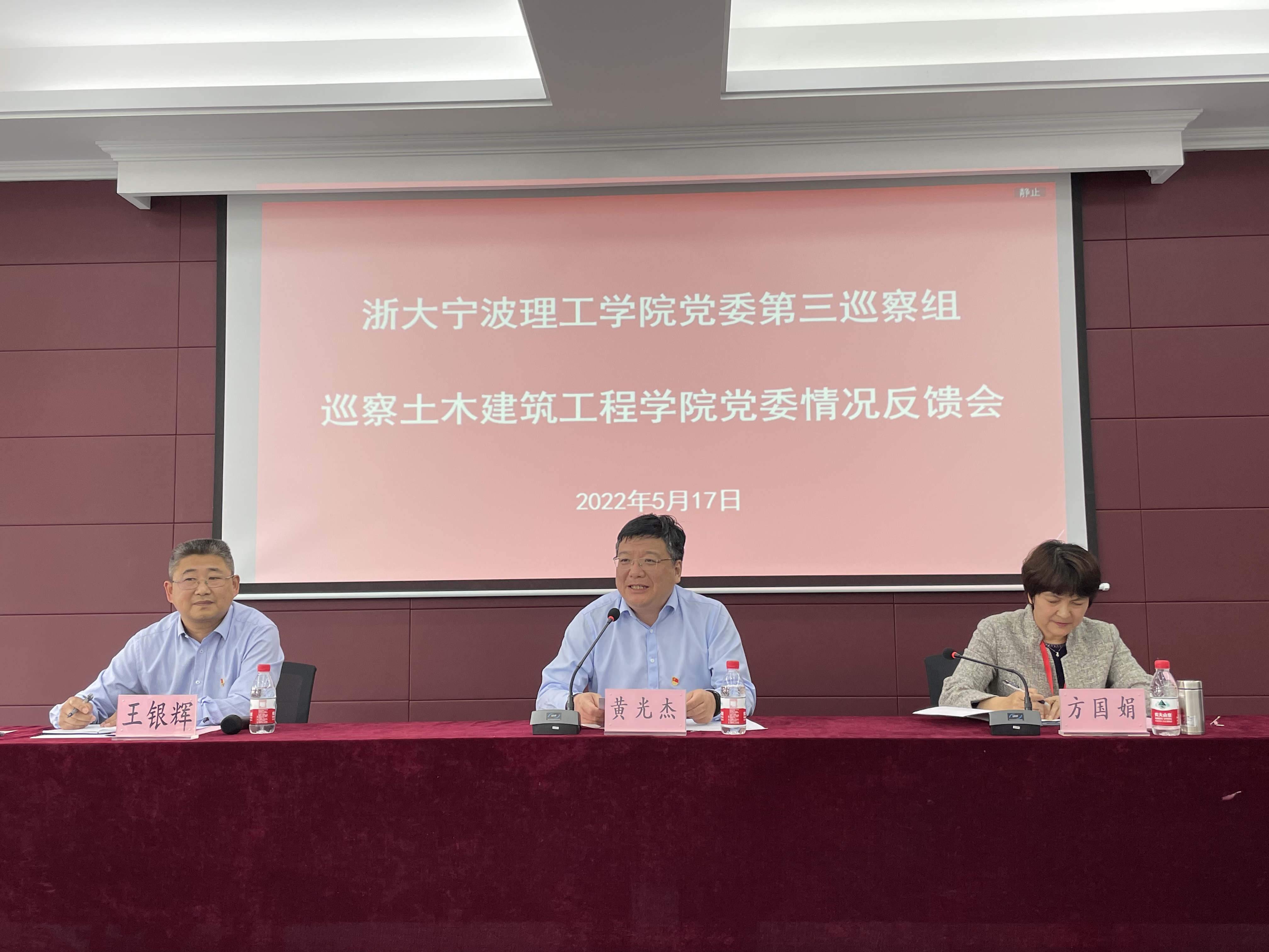 5月17日,学校党委第三巡察组巡察土建学院党委情况反馈会在SA305会议室召开。学校党委委员、纪委书记、巡察工作领导小组副组长黄光杰,巡察组组长方国娟、联络员沈静波,巡察办相关人员,土建学院全体教职工、学生党员代表参加反馈会。反馈会由土建学院党委书记王银辉主持。根据党委巡察工作统一部署,2022年4月15日至4月29日,第三巡察组进驻土建学院党委开展巡察。巡察组通过听取工作汇报、开展个别谈话、征集意见建议、召开...