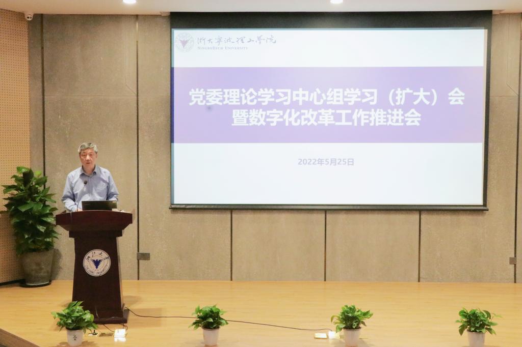 2022年5月25日,开云kaiyun官网召开党委理论学习中心组学习(扩大)会暨数字化改革工作推进会,专题学习贯彻习近平总书记关于数字化改革系列重要论述,落实省委全方位纵深推进数字化改革和市委以“六大变革”引领全面深化改革的部署要求,对全校下阶段着力推进数字化改革作出重点部署。学校党委书记胡征宇主持会议并讲话。宁波市委改革办常务副主任、一级巡视员阎勤作《数字化改革若干问题》专题报告。学校党委理论学习中心组...