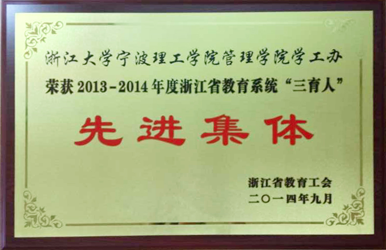 近日,浙江省教育工会表彰了2013-2014年度省教育系统“三育人”先进,开云管理学院学工办获“三育人”先进集体荣誉称号。