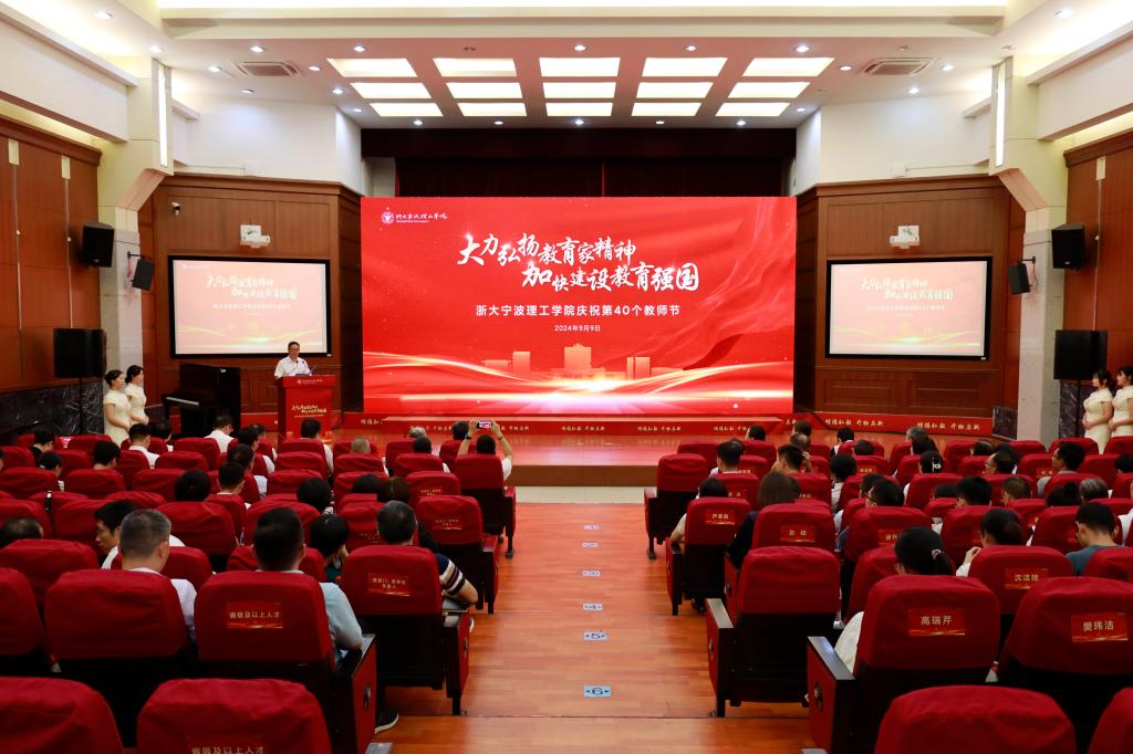 强国必先强教,强教必先强师。丹桂飘香,稻菽丰稔。学校隆重举行庆祝第40个教师节大会,向奋斗在中国高等教育事业第一线的“浙大宁理人”致以节日的慰问和最崇高的敬意。向肩负着“大力弘扬教育家精神,加快建设教育强国”崇高使命的“浙大宁理人”寄予最殷切的期望。校领导,鄞州银行董事长王军辉、鄞州银行公益基金会理事长俞峰、美康生物人力资源总监王晓君、乐歌人体工学科技股份有限公司文化传播中心主任魏露露出席大会。...