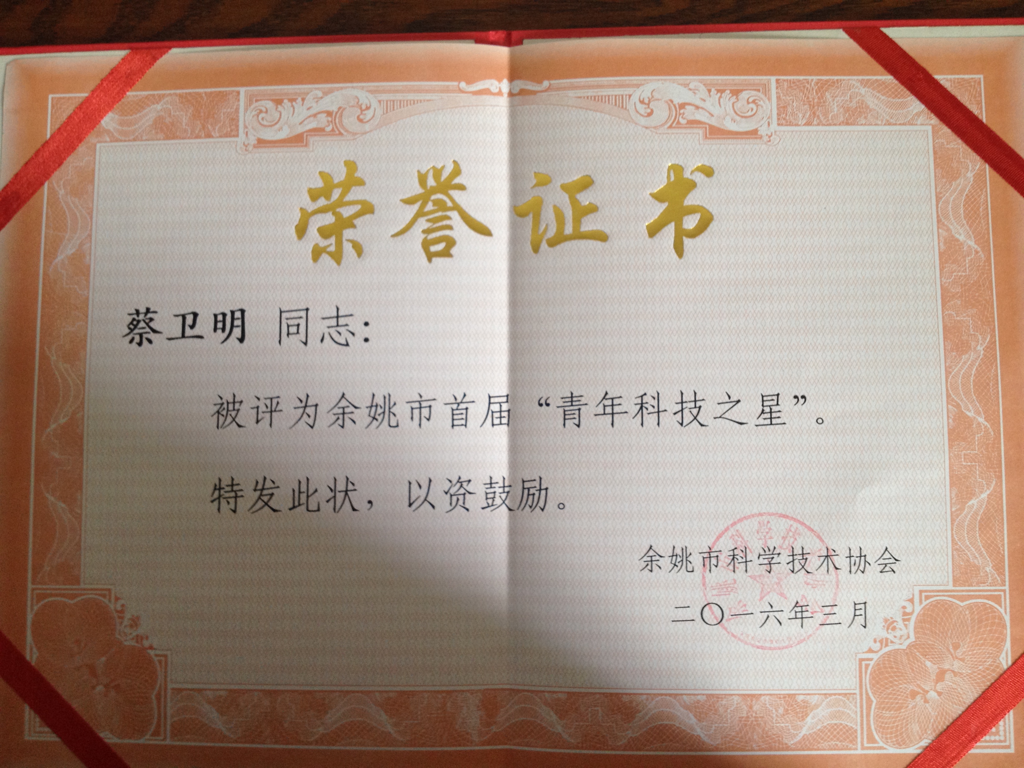 近日,从余姚市科协获悉,开云选派的宁波市科技特派员蔡卫明博士荣获余姚市首届“青年科技之星”称号。