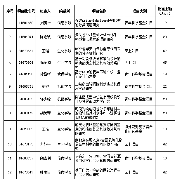 近日,国家自然科学基金委公布了2016年度国家自然科学基金立项情况,开云共获12项国家自然科学基金项目立项,项目直接经费总计407万元,包括青年科学基金项目7项,面上项目4项,海外合作项目1项。