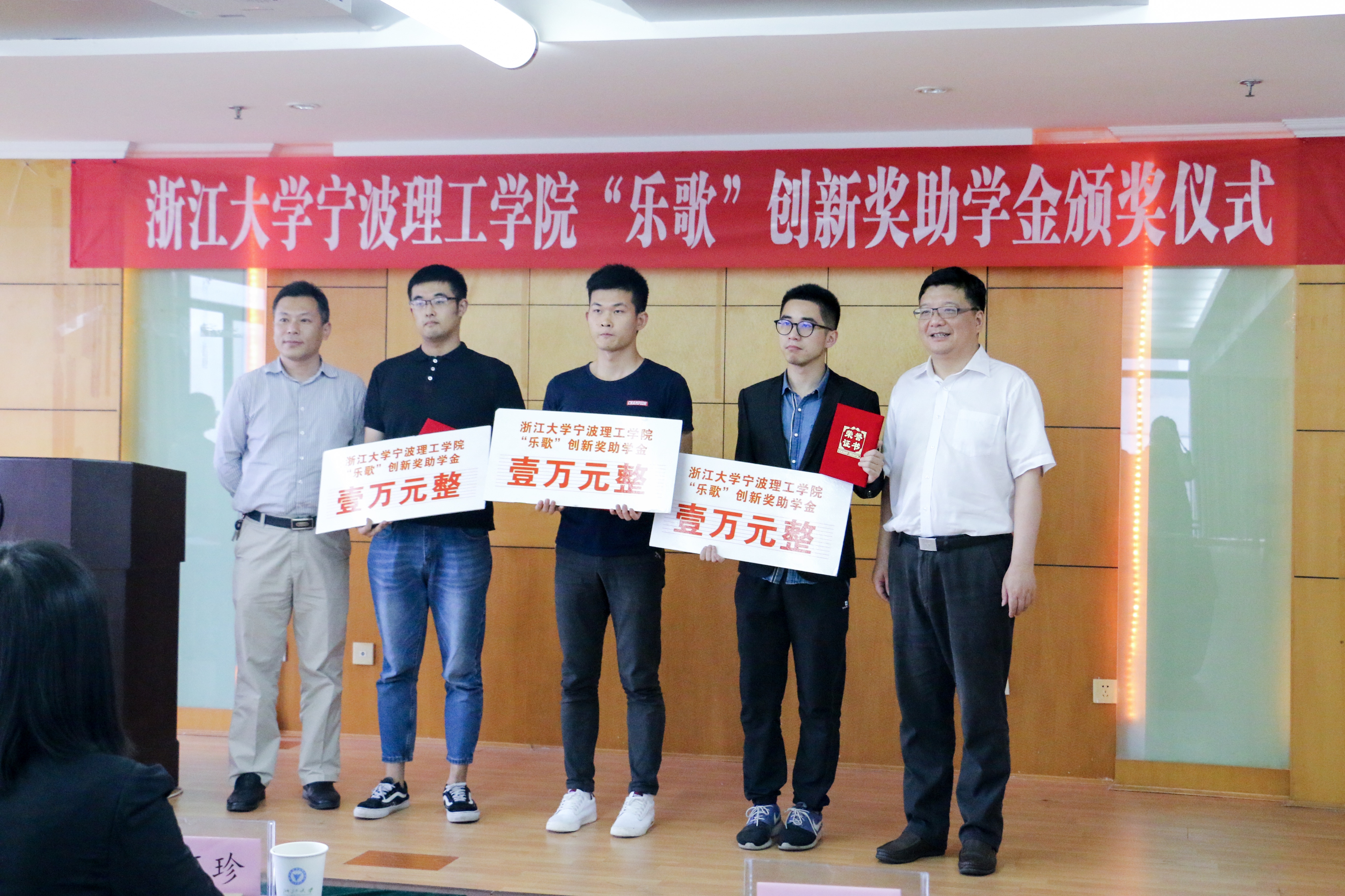 6月13日下午,学校“乐歌”创新奖助学金颁奖仪式在行政楼603举行。出席本次仪式的有学校党委副书记黄光杰,学校教育发展基金会相关人员,学工部、二级学院相关领导。乐歌人体工学科技股份有限公司副总经理、技术总工程师郑祥明,人力资源总监胡玉珍亲临仪式现场。仪式由学校学生处副处长廖海鹏主持。廖海鹏副处长首先对“乐歌”创新奖助学金的设立背景做了简单介绍,随后乐歌胡玉珍总监宣读了《浙江大学宁波理工学院2016年“...